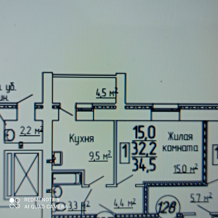 Общая площадь 34.5 м2