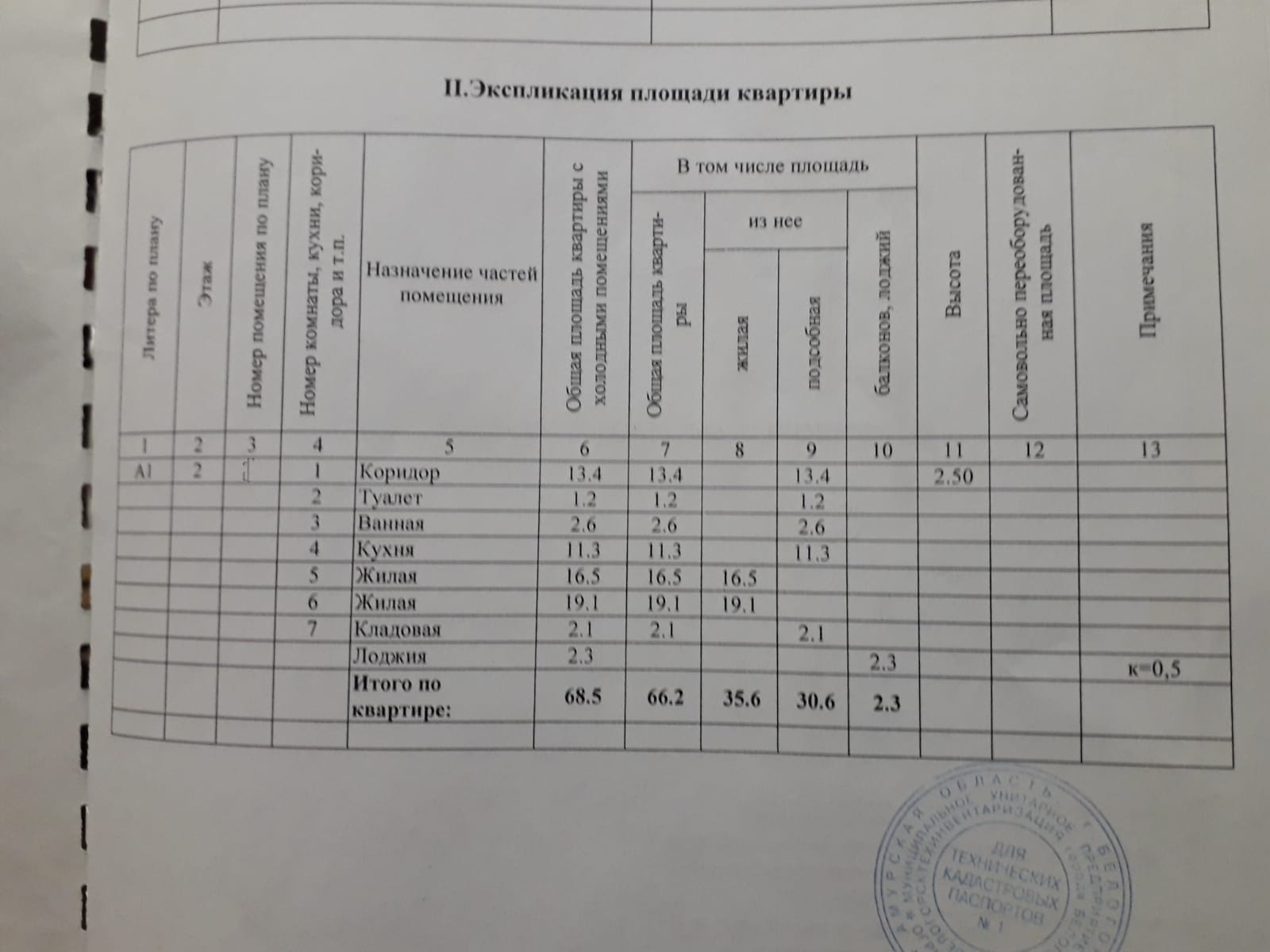 Общая площадь 68.5 м2