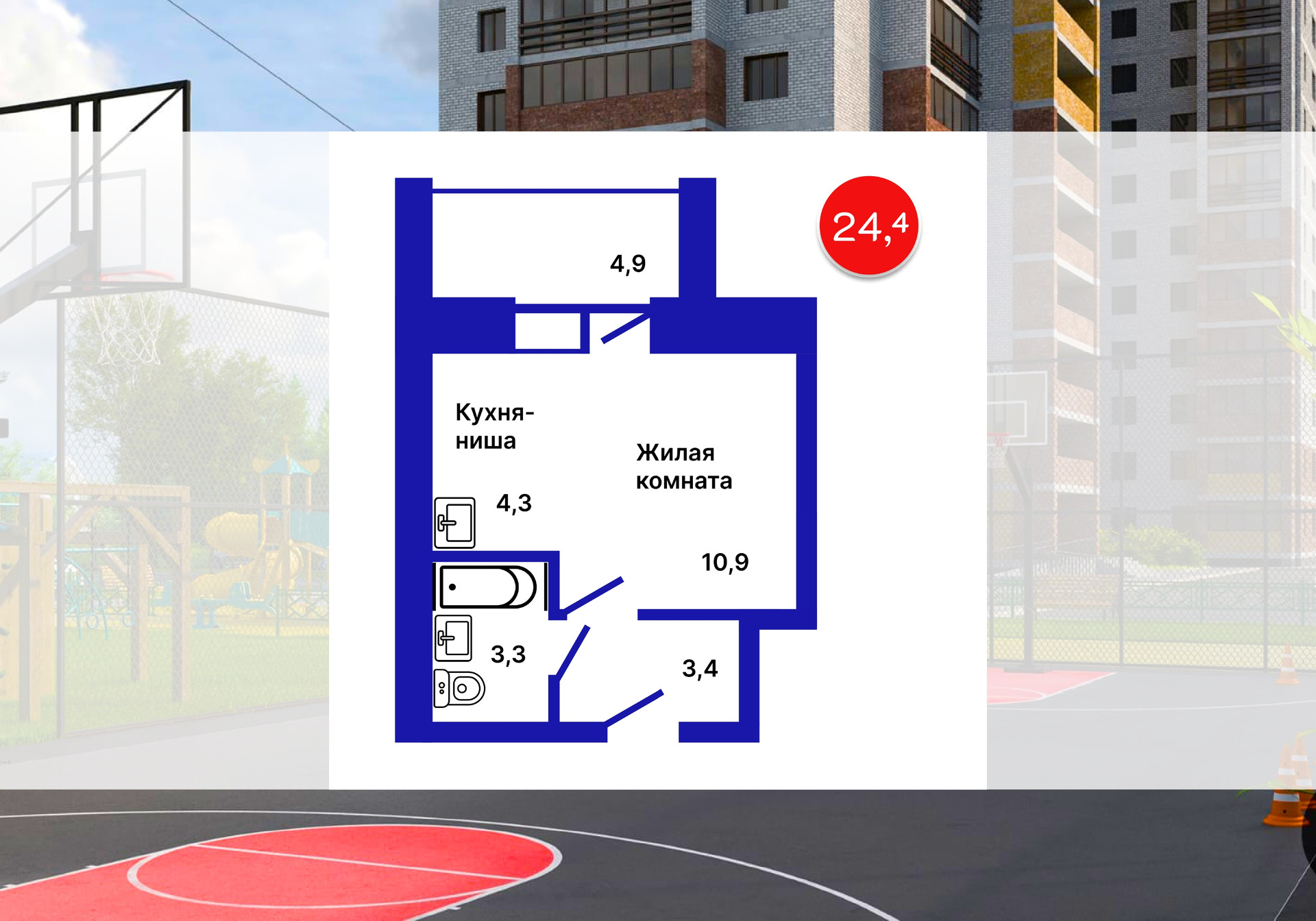 Общая площадь 24.4 м2