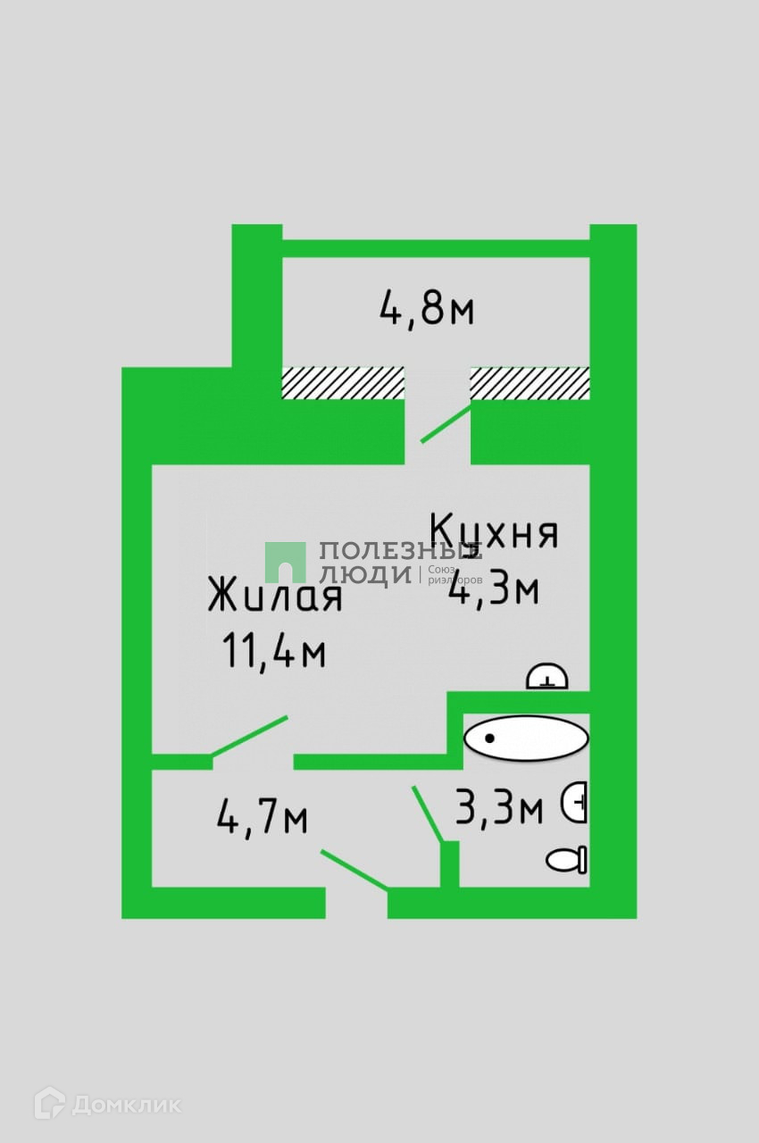 Жилая площадь 11.4 м2