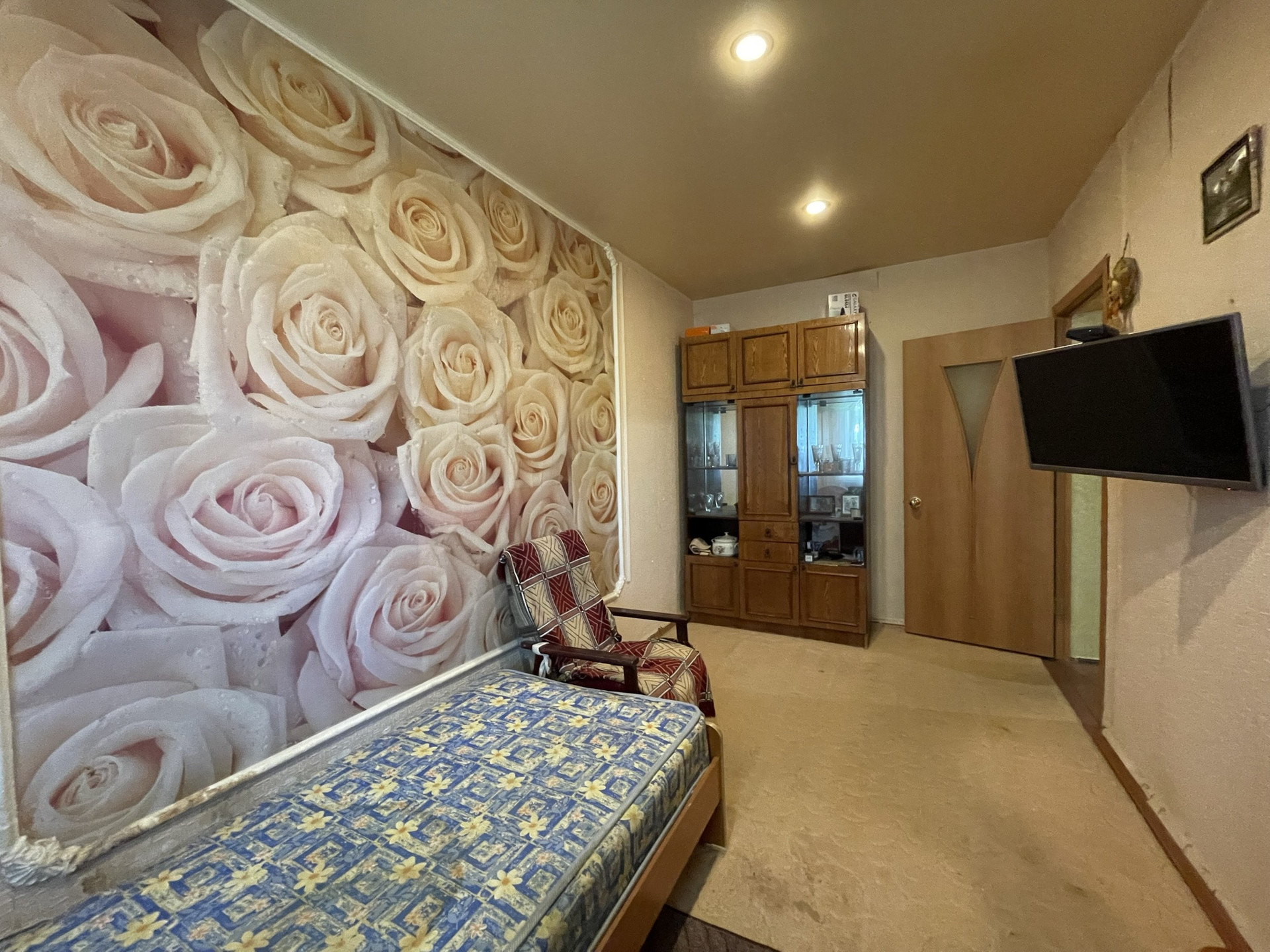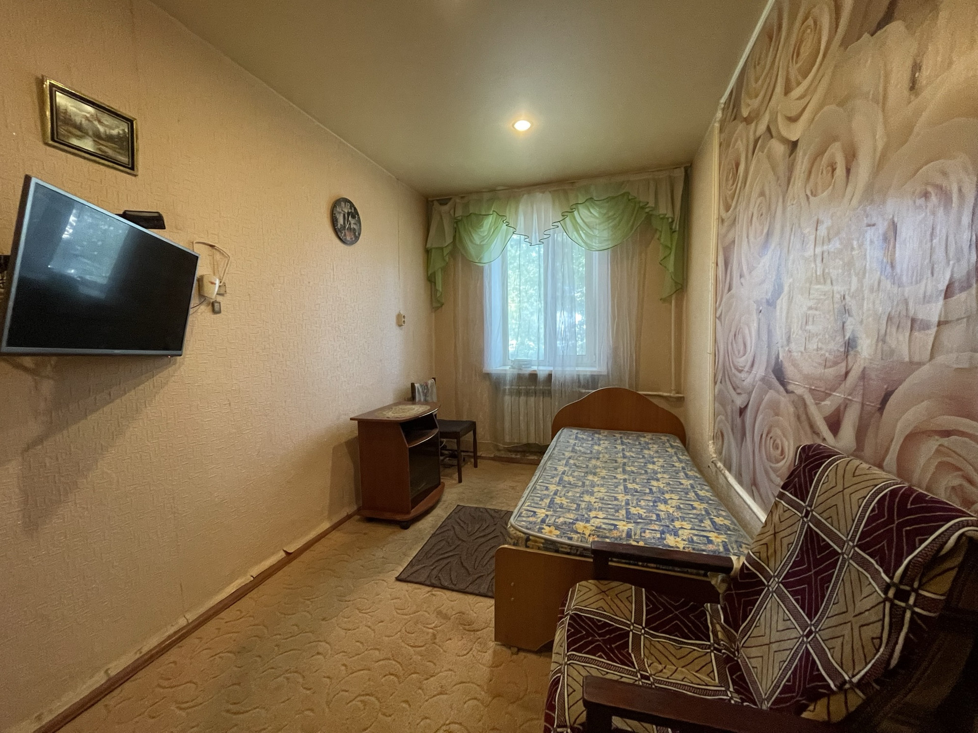 - сделан экономремонт, выровненные стены, натянут потолок,