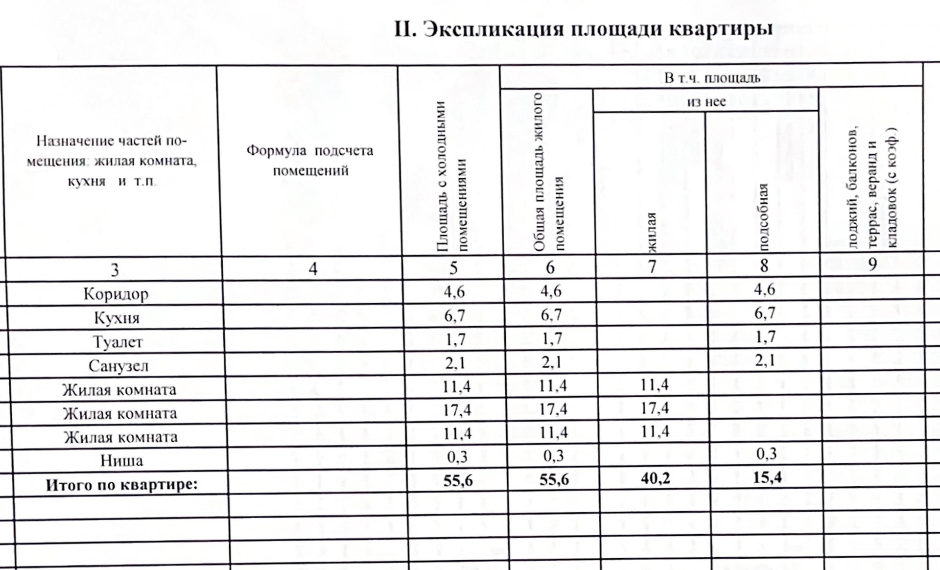 Общая площадь 55.6 м2