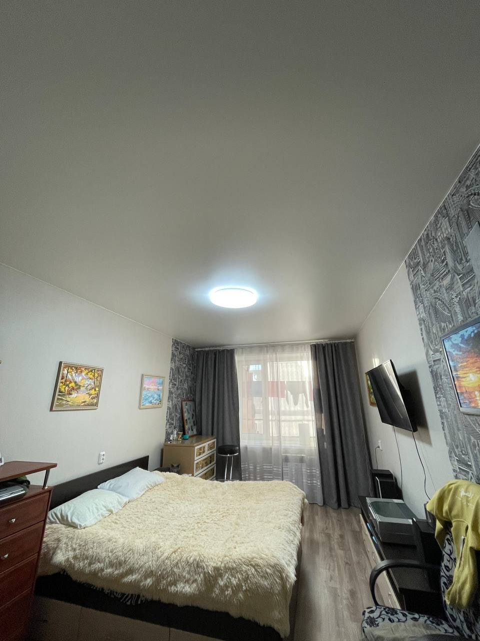 -Ремонт в квартире  выполнен в 2022 году, стены и пол выровнены, на полу во всей квартире линолеум,  во всей квартире натяжные потолки, стены оклеены обоями.