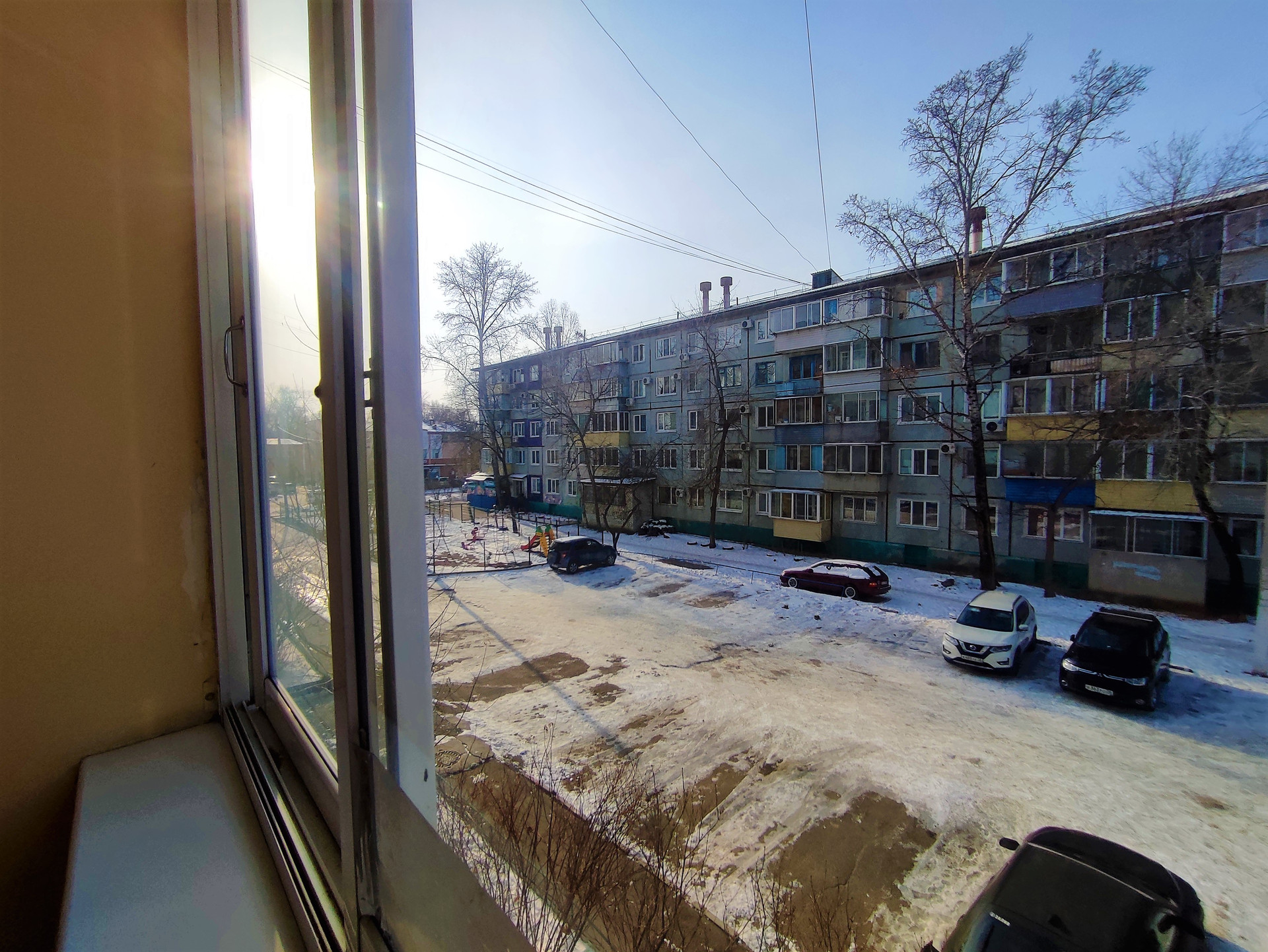 Вид из окна двор, улица
