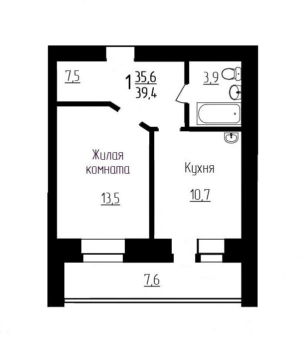 Балкон, лоджия 1 балкон