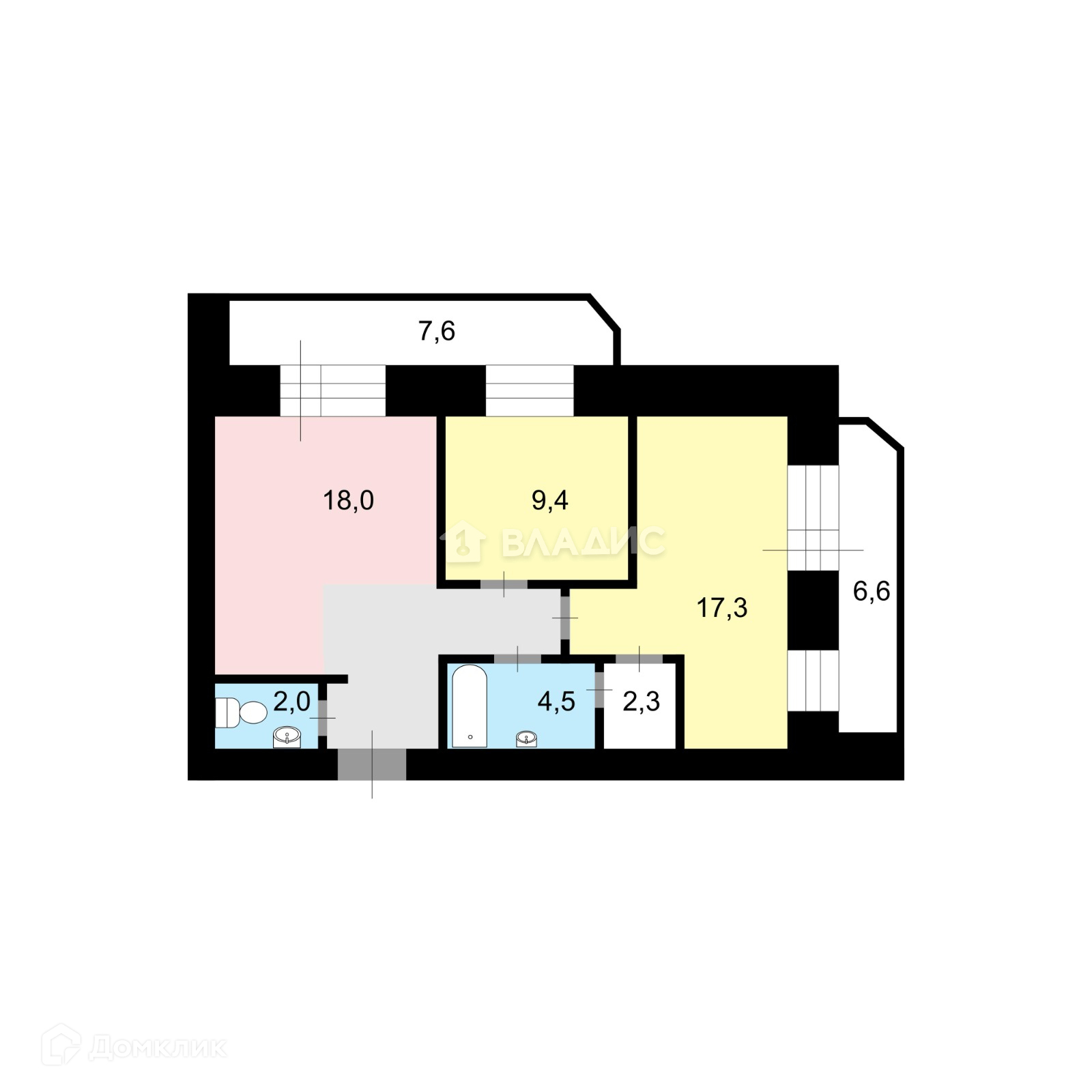 Общая площадь 65.9 м2