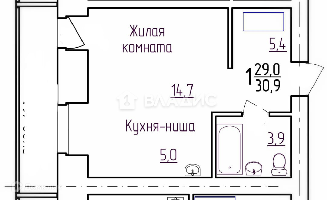 Общая площадь 30.9 м2
