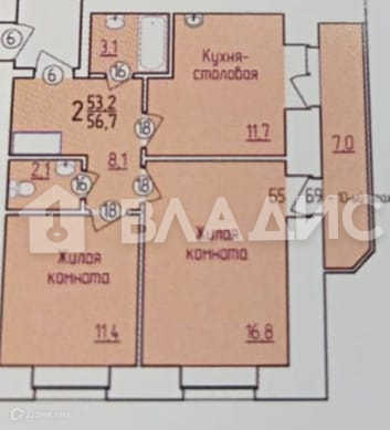 Общая площадь 55.8 м2