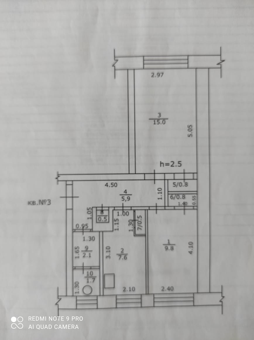 Высота потолков 2.5 м