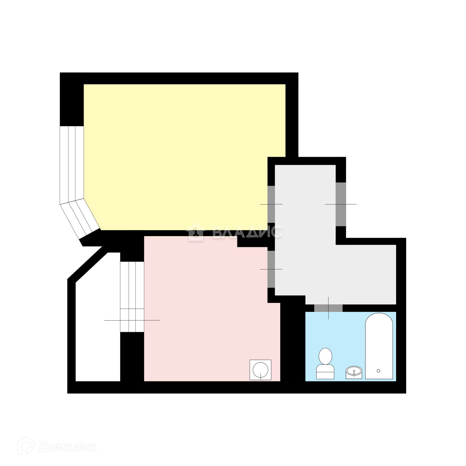 Площадь квартиры (с холодными помещениями) – 33,6 кв.м.,