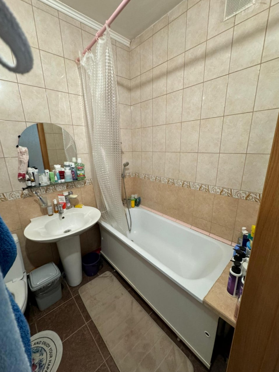 Квартира с ремонтом, натяжные потолки, санузел в кафеле, лоджия остеклена.
