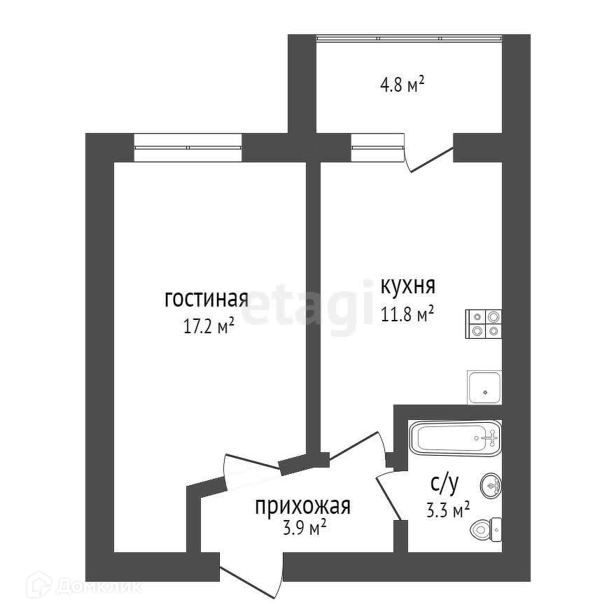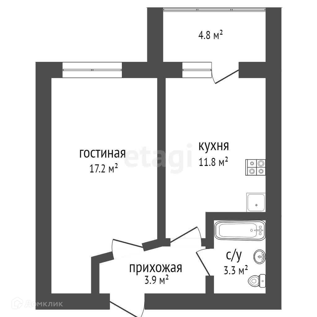 - отличная планировка – просторная комната и большая кухня