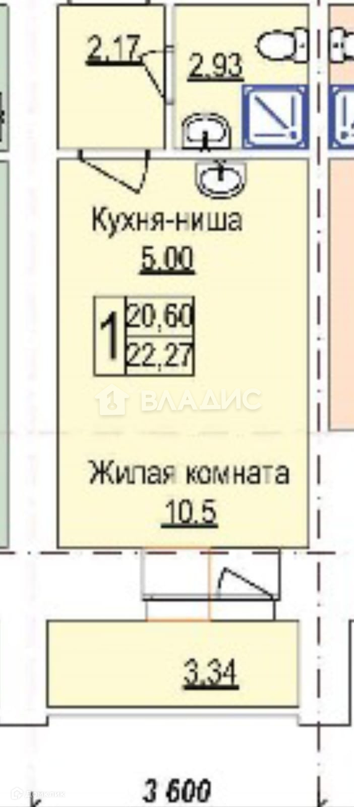 Общая площадь 23 м2