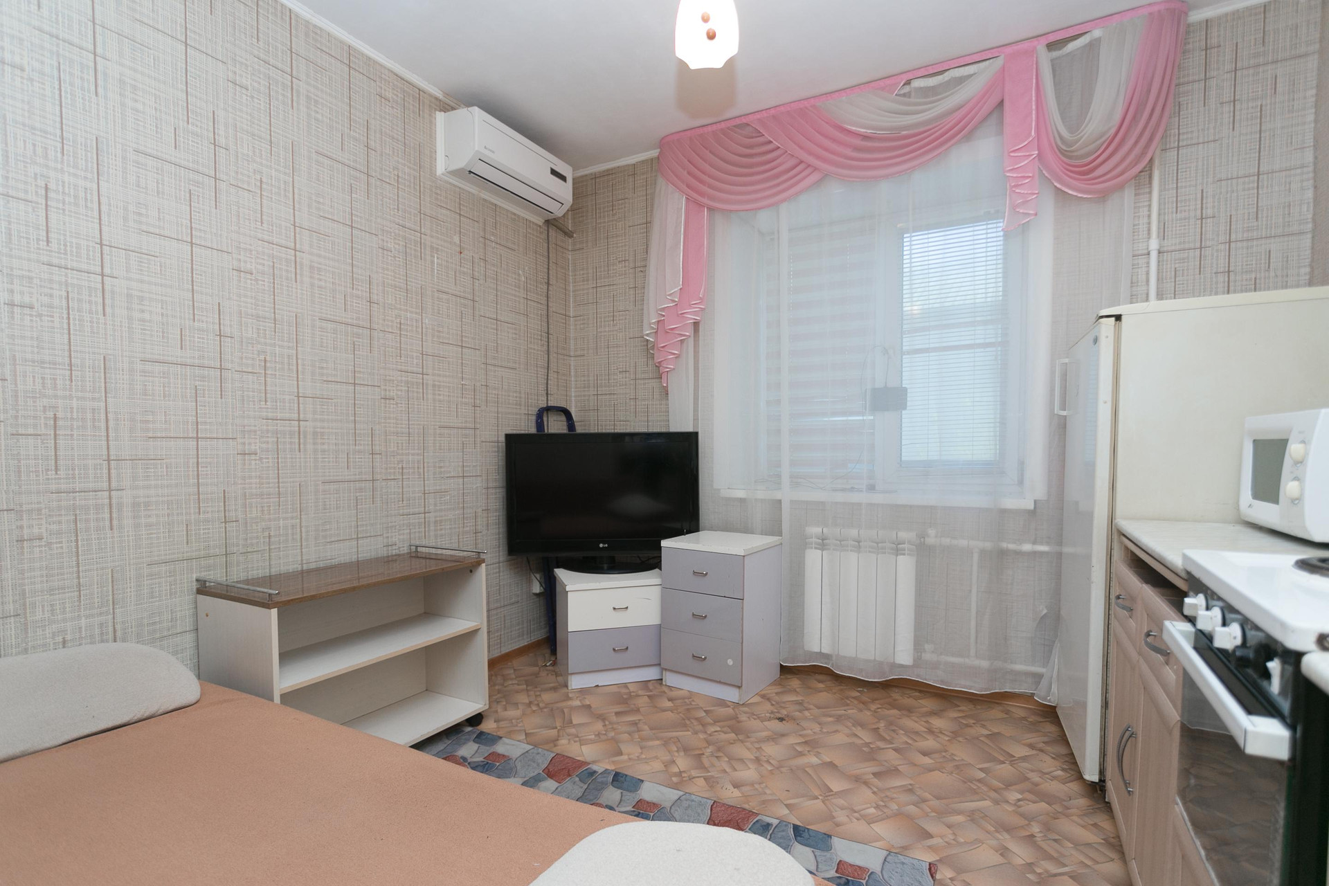 В студии эконом ремонт, остается все, что на фотографии видите.