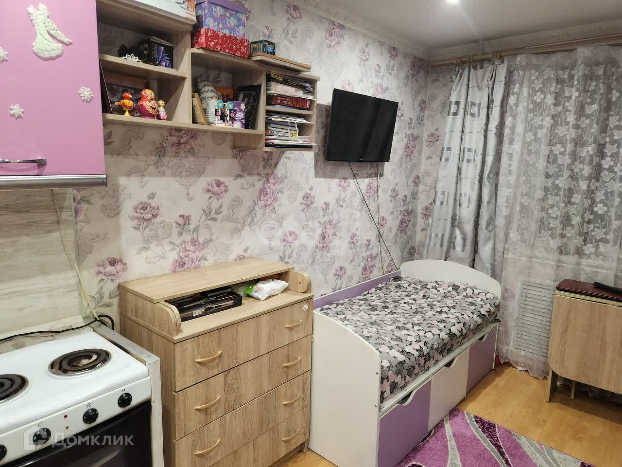 В продаже отличная квартира-студия с ремонтом, частично с мебелью.