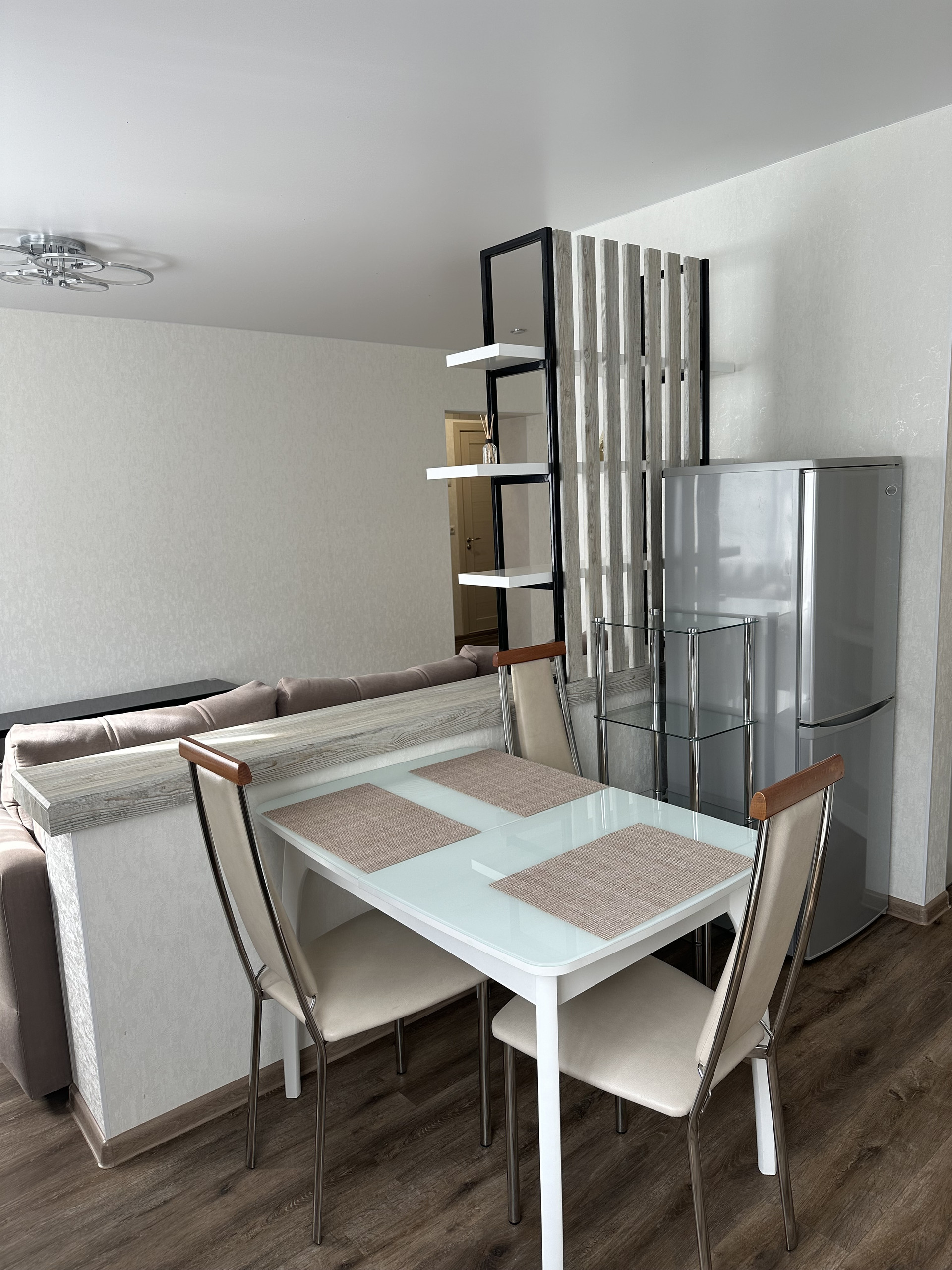 Расположение квартиры позволяет наслаждаться всеми преимуществами развитой инфраструктуры. Рядом находятся 11 школа, детский сад, парк, фитнес-центр и торговый центр. Для семей с детьми особенно важно наличие детской и спортивной площадок прямо во дворе дома.