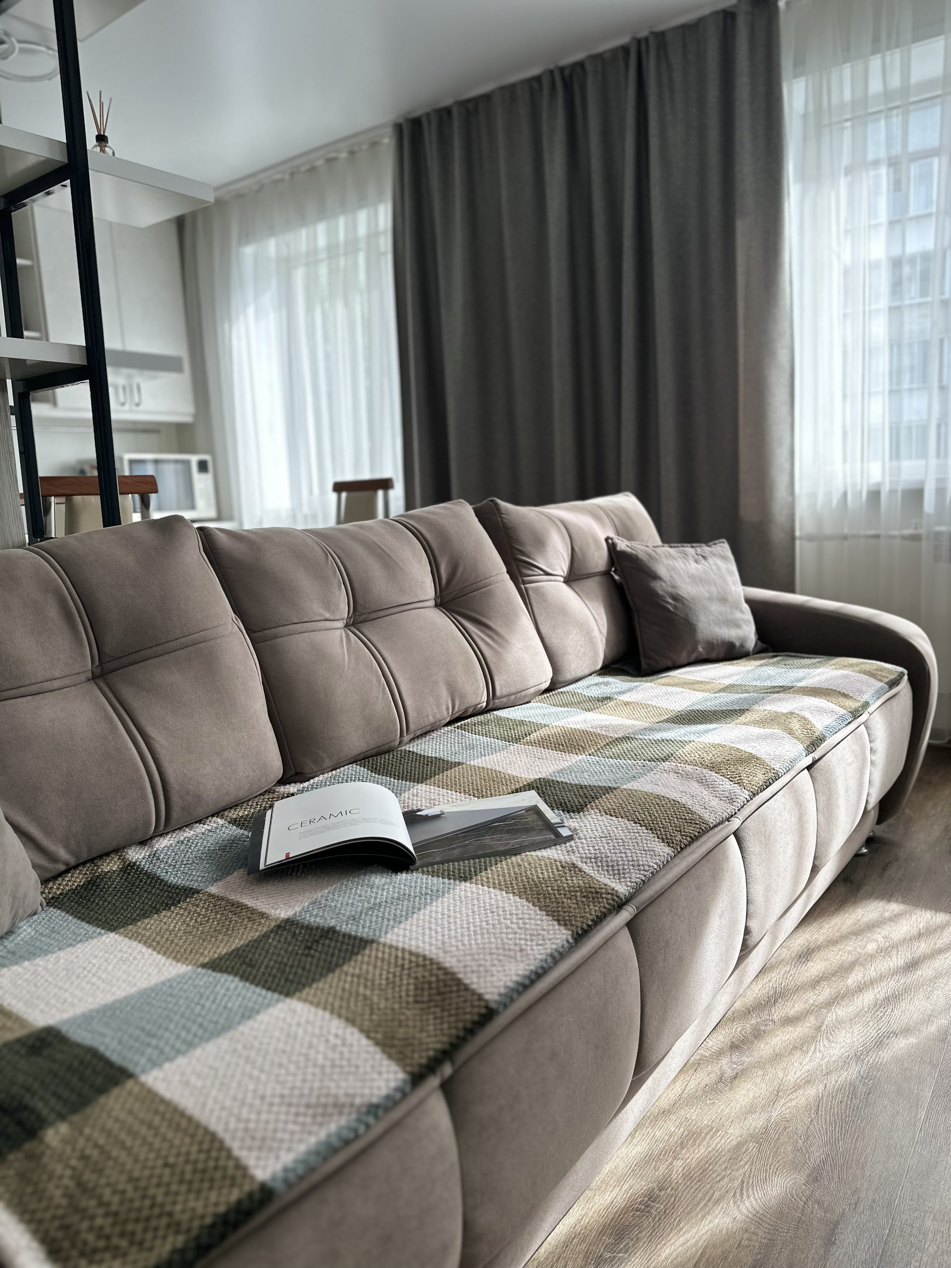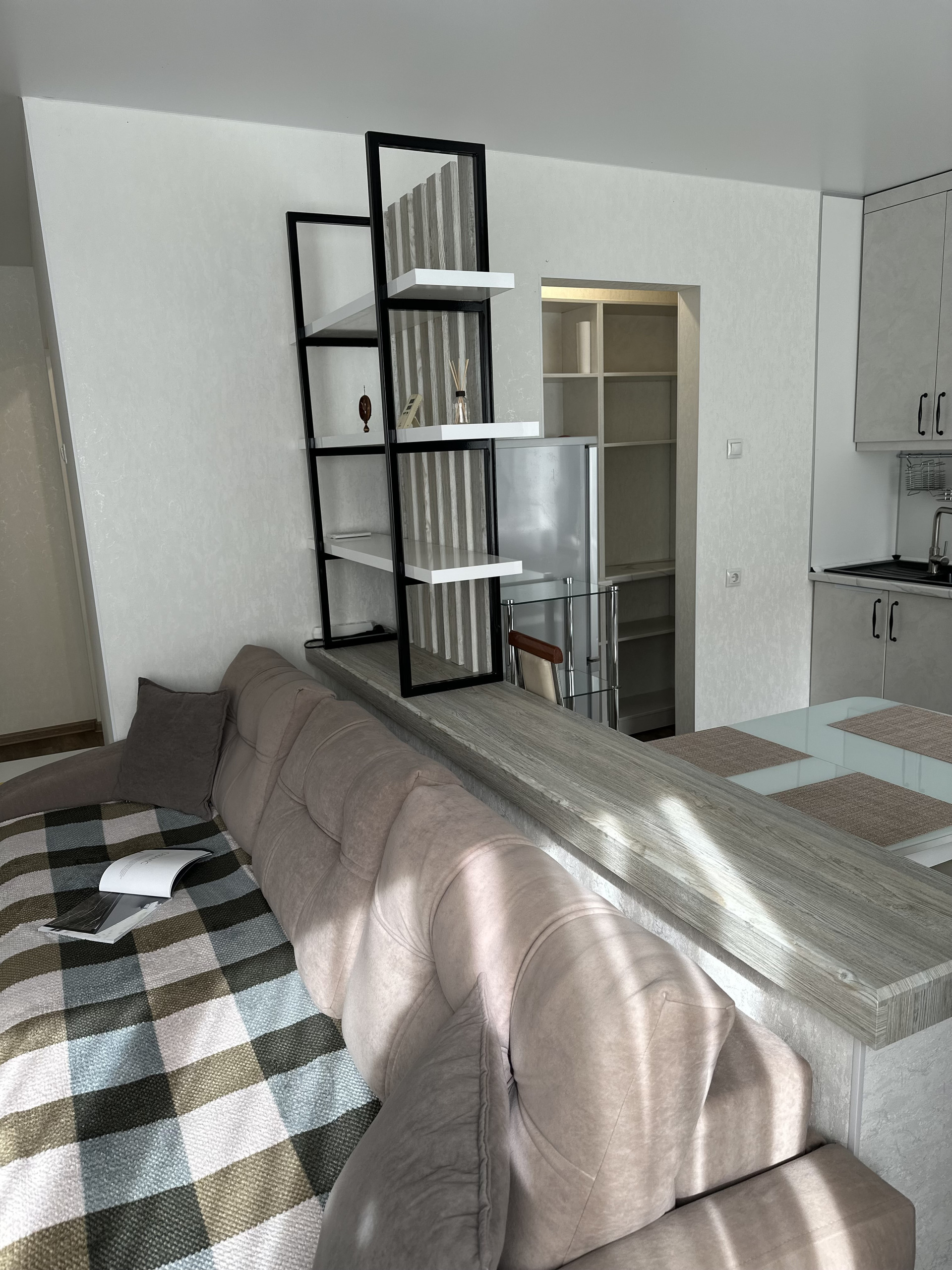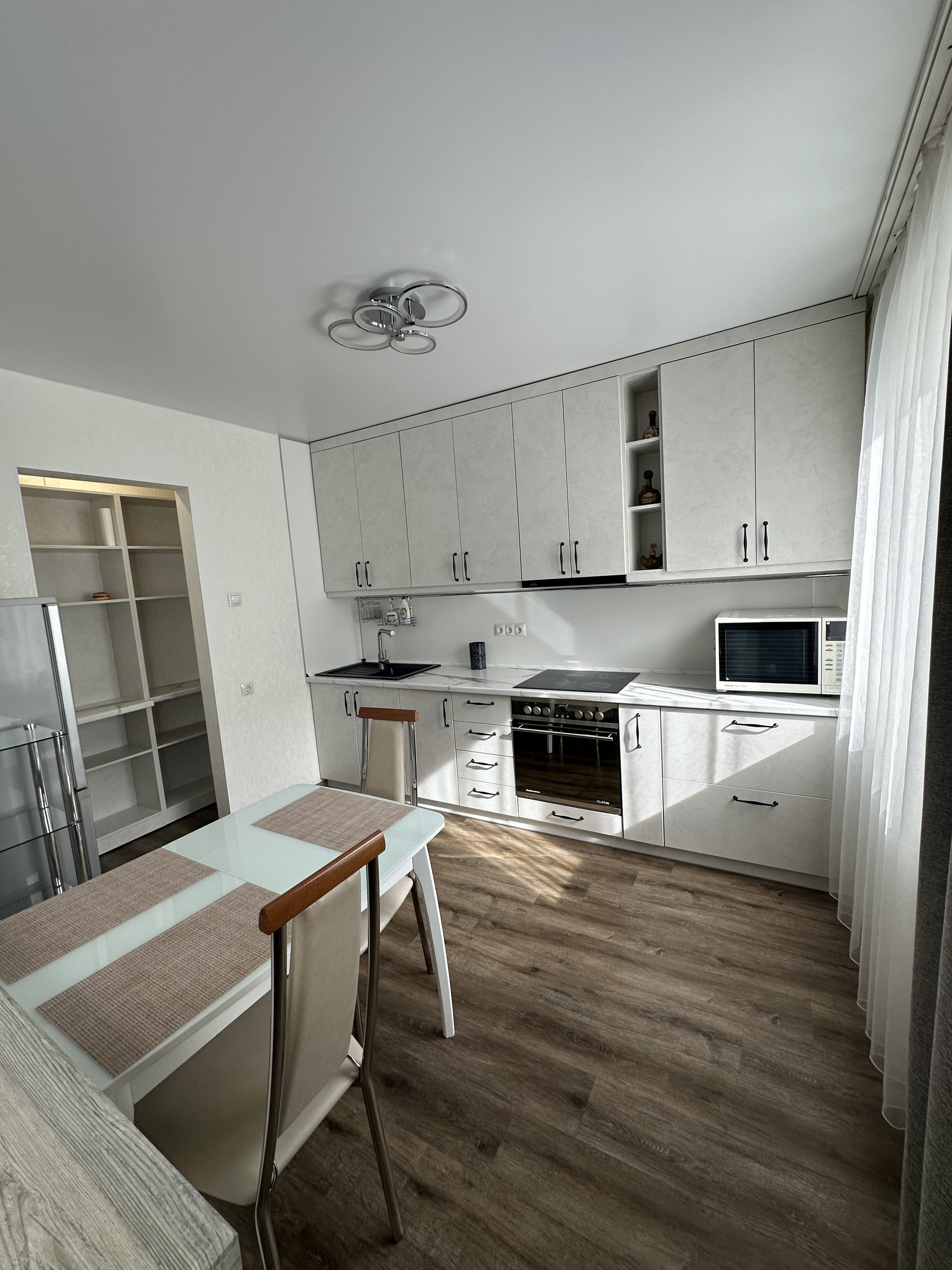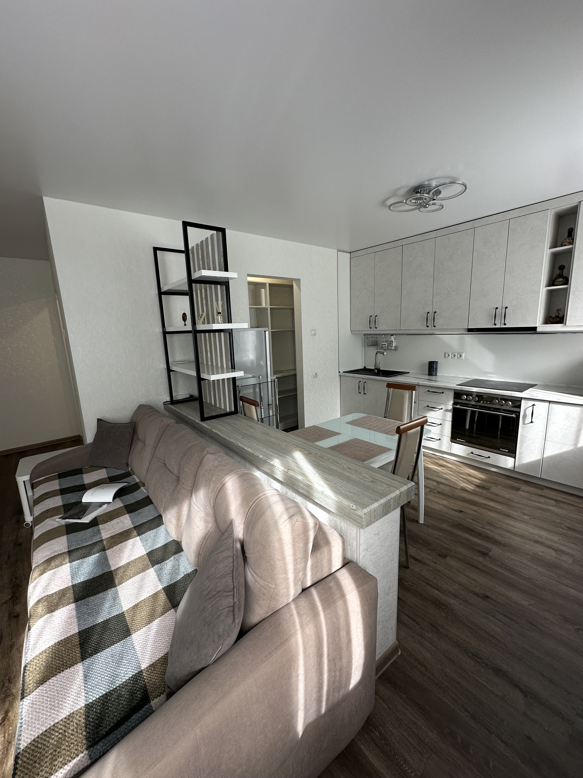 Жилая площадь составляет 40.8 квадратных метров, а кухня — 9.8 квадратных метров. В квартире выполнен качественный евроремонт, что придаёт ей особый шарм и комфорт. Также имеется раздельный санузел и балкон, откуда открывается прекрасный вид на двор и улицу. Квартира полностью укомплектована всей мебелью и бытовой техникой (все что на фото остается при продаже).