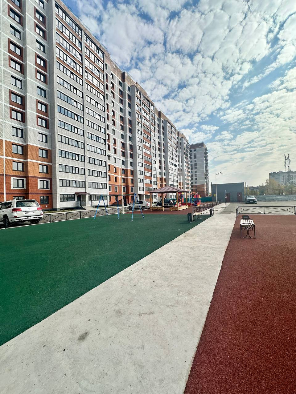 Для маленьких жителей во дворе установлены детская и спортивная площадки, где можно активно проводить время на свежем воздухе. Для удобства автовладельцев предусмотрена парковка прямо во дворе. Безопасность жильцов обеспечивается благодаря наличию кодовой двери.