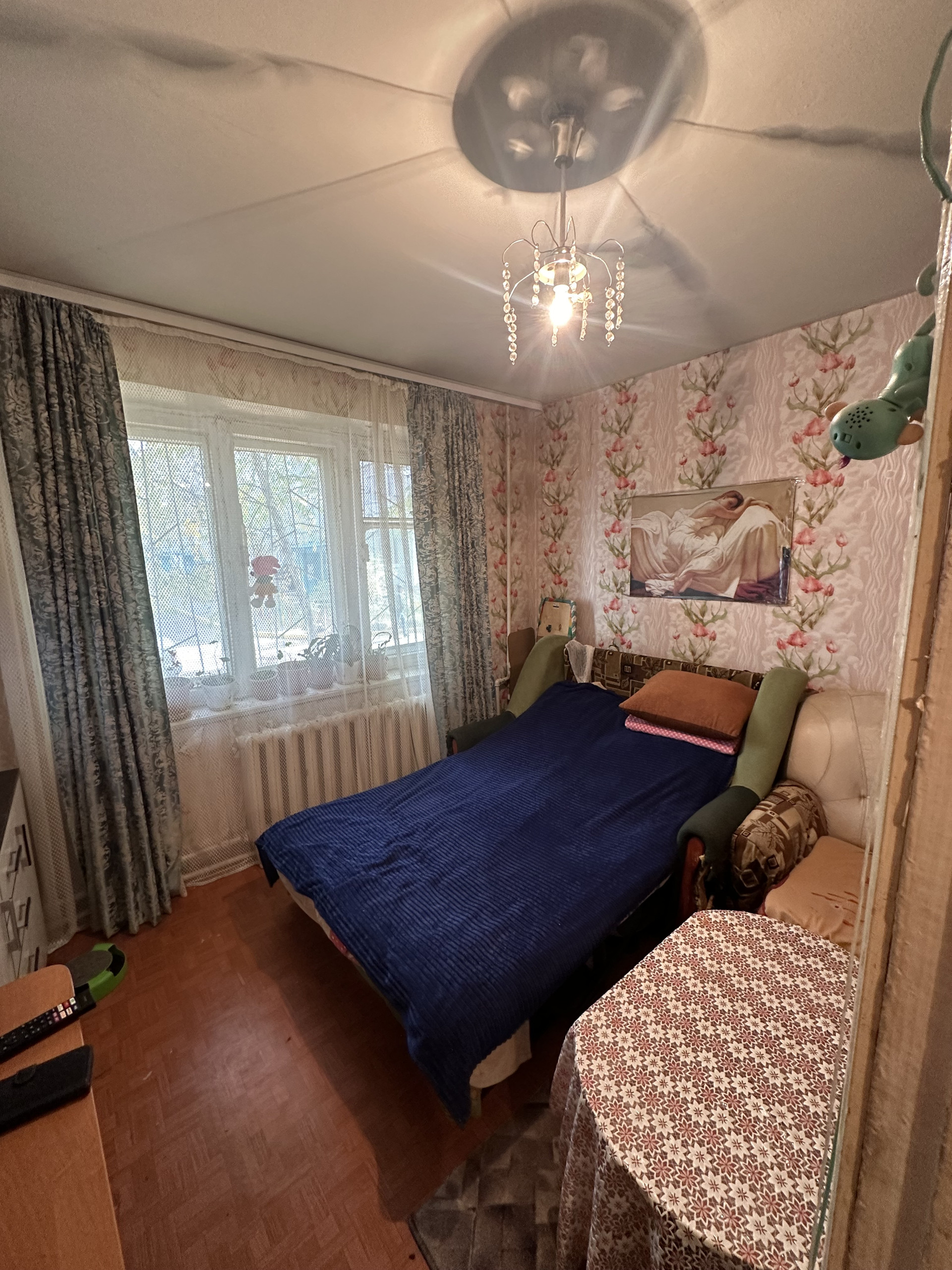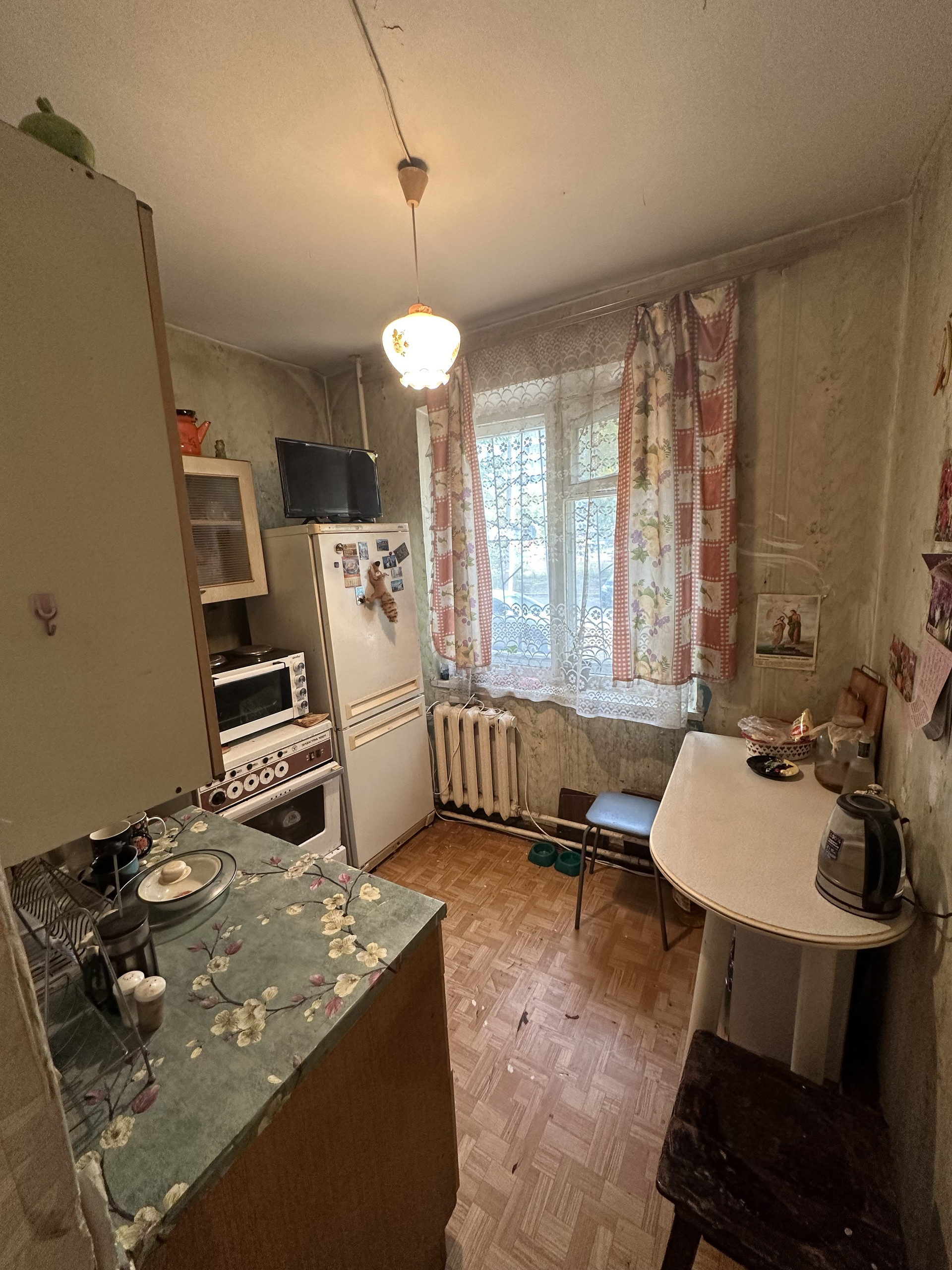 Жилая площадь составляет 12.2 квадратных метров, а кухня – 6.1 квадратных метров. Из окон открывается вид на тихий и ухоженный двор, где расположены детская и спортивная площадки.