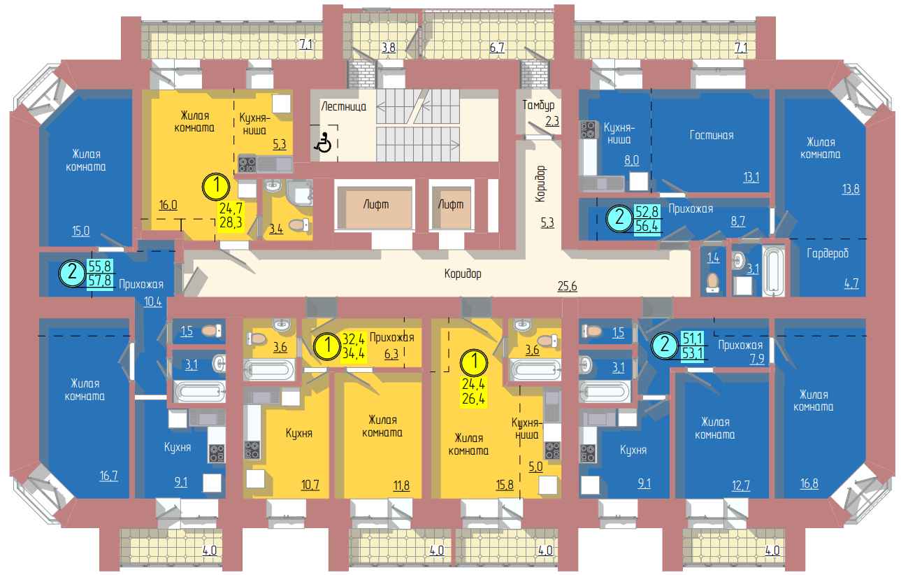 Общая площадь 54.3 м2