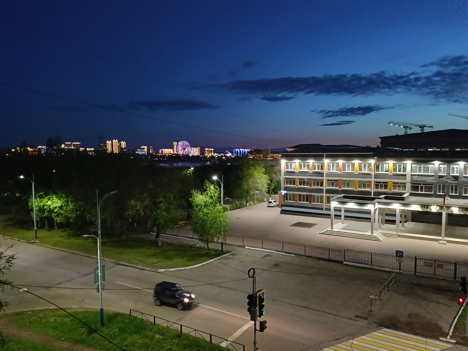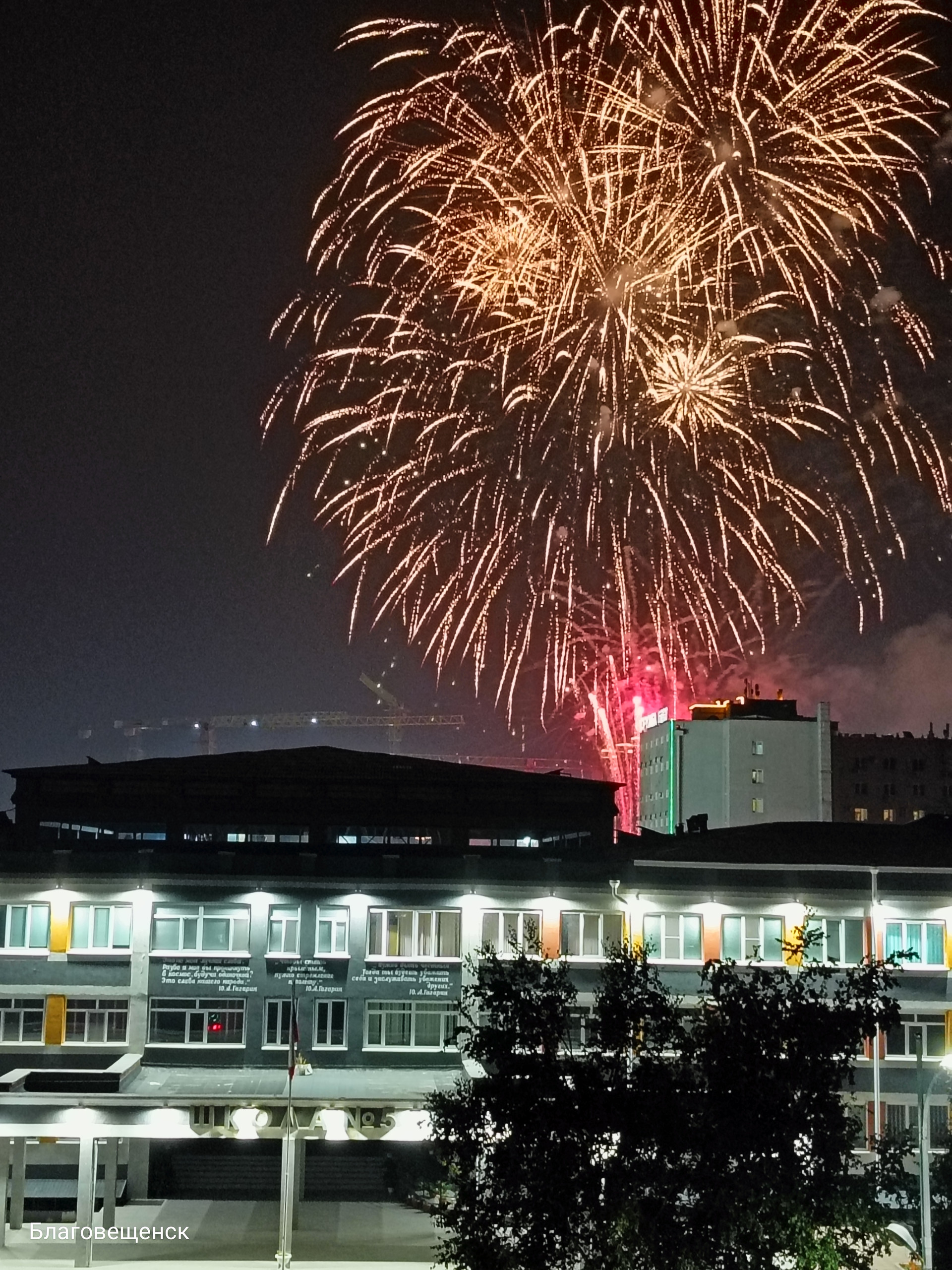 Окна лоджии выходят на крыльцо школы No 5, светящийся Китай. Скоро можно будет наблюдать движение по канатной дороге Благовещенск-Хэйхэ.