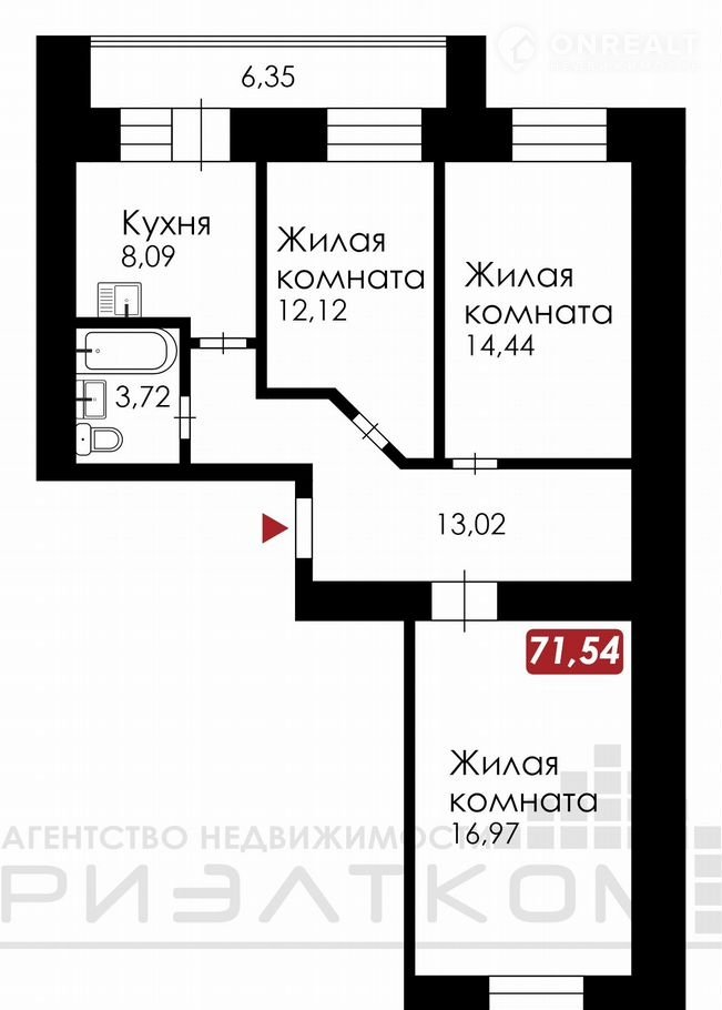 Общая площадь 71.5 м2