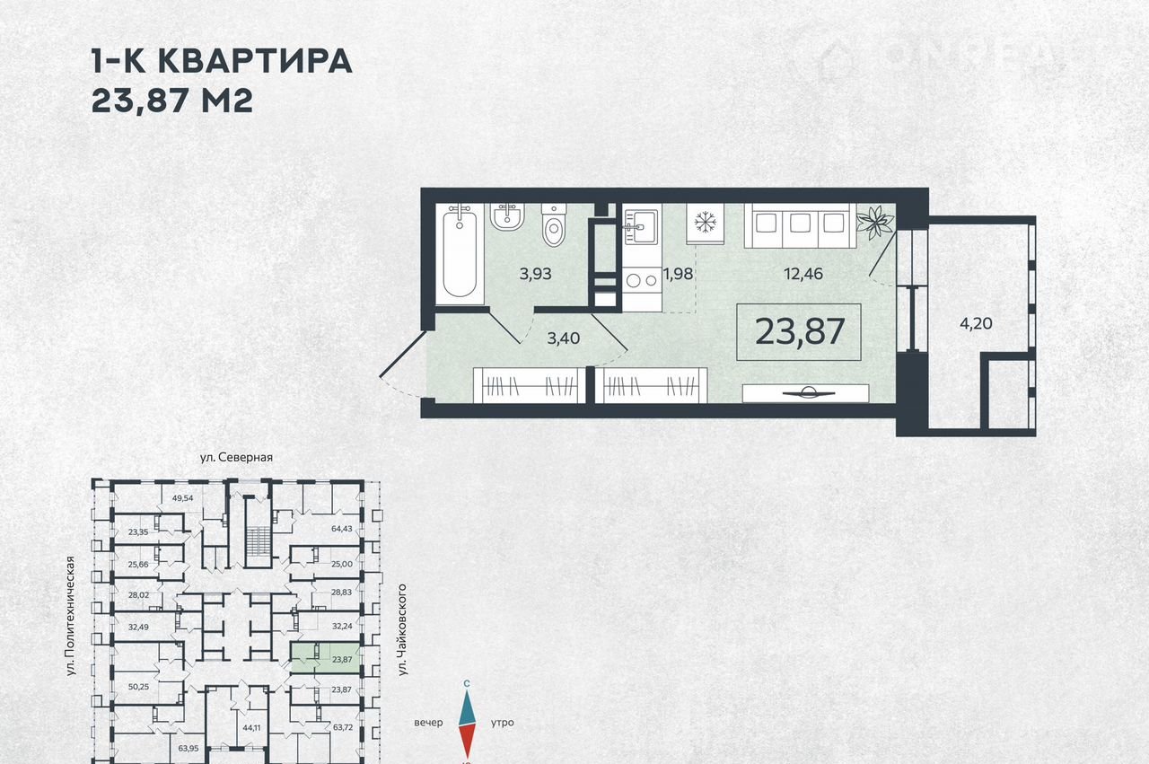 Квартира студия, 23.9 м2, этаж 23 / 24, на продажу в Благовещенске, улица Чайковского, 100/2