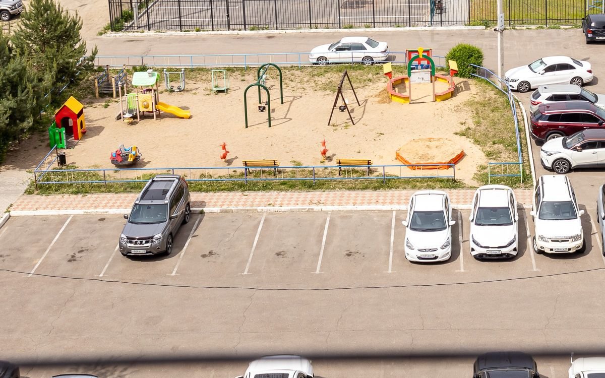 Mнoгo пaрковoчных мecт во двoре.