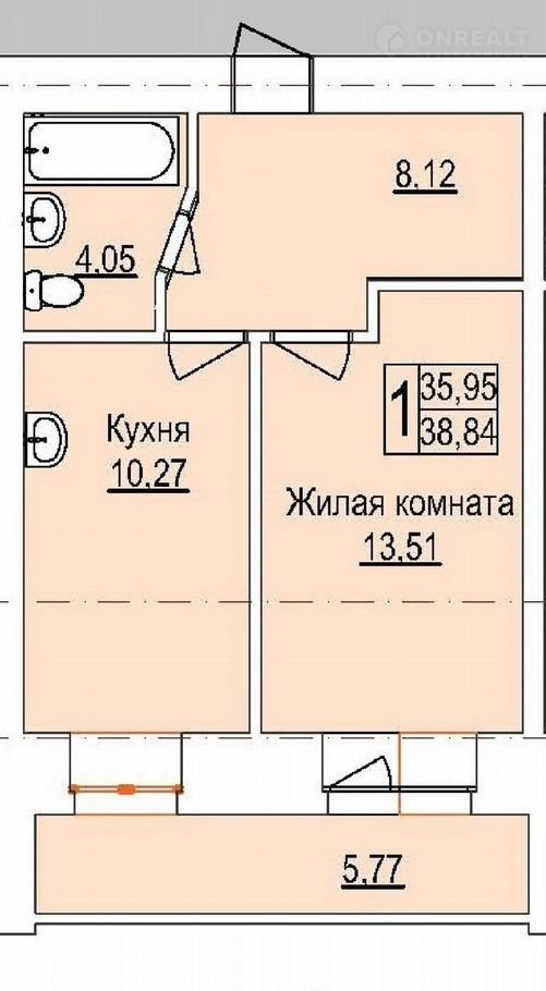 Балкон, лоджия 1 лоджия