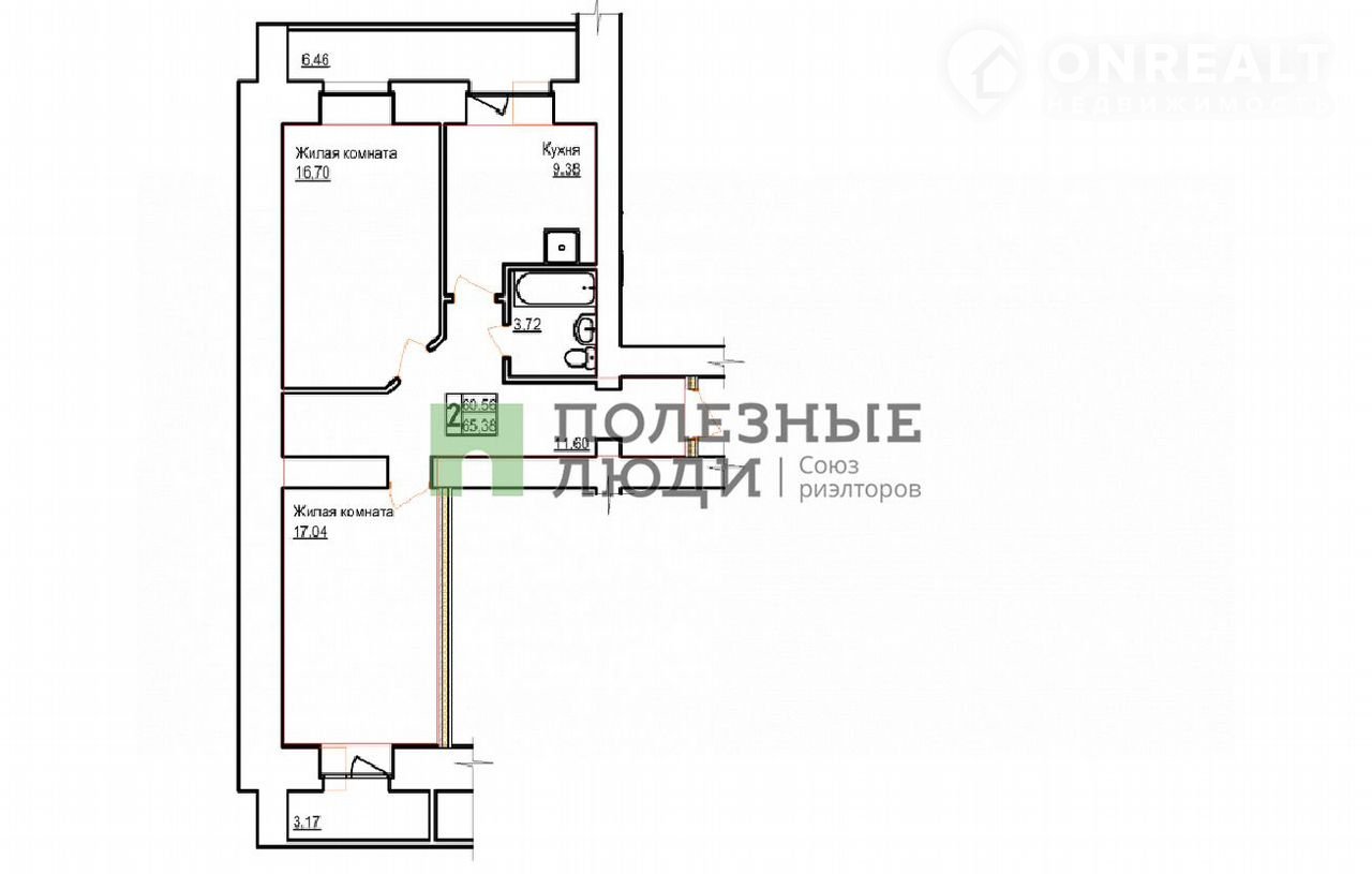 Общая площадь 65.4 м2