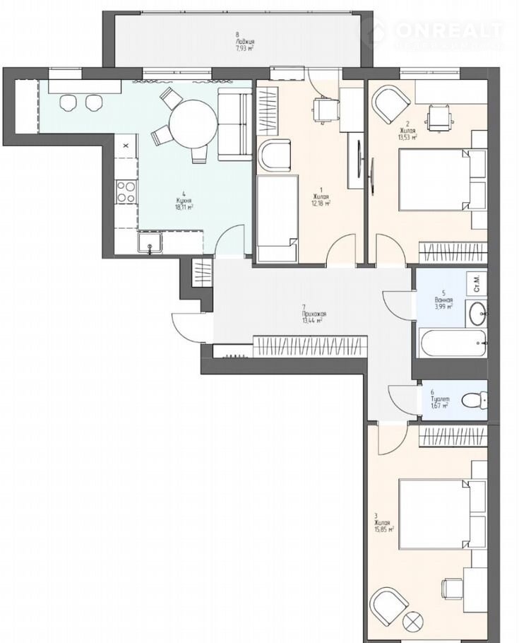 Площадь кухни 13 м2