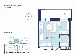 Общая площадь: 25.9 м2