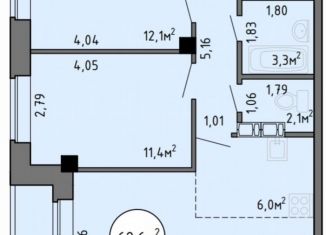 Общая площадь: 59.4 м2