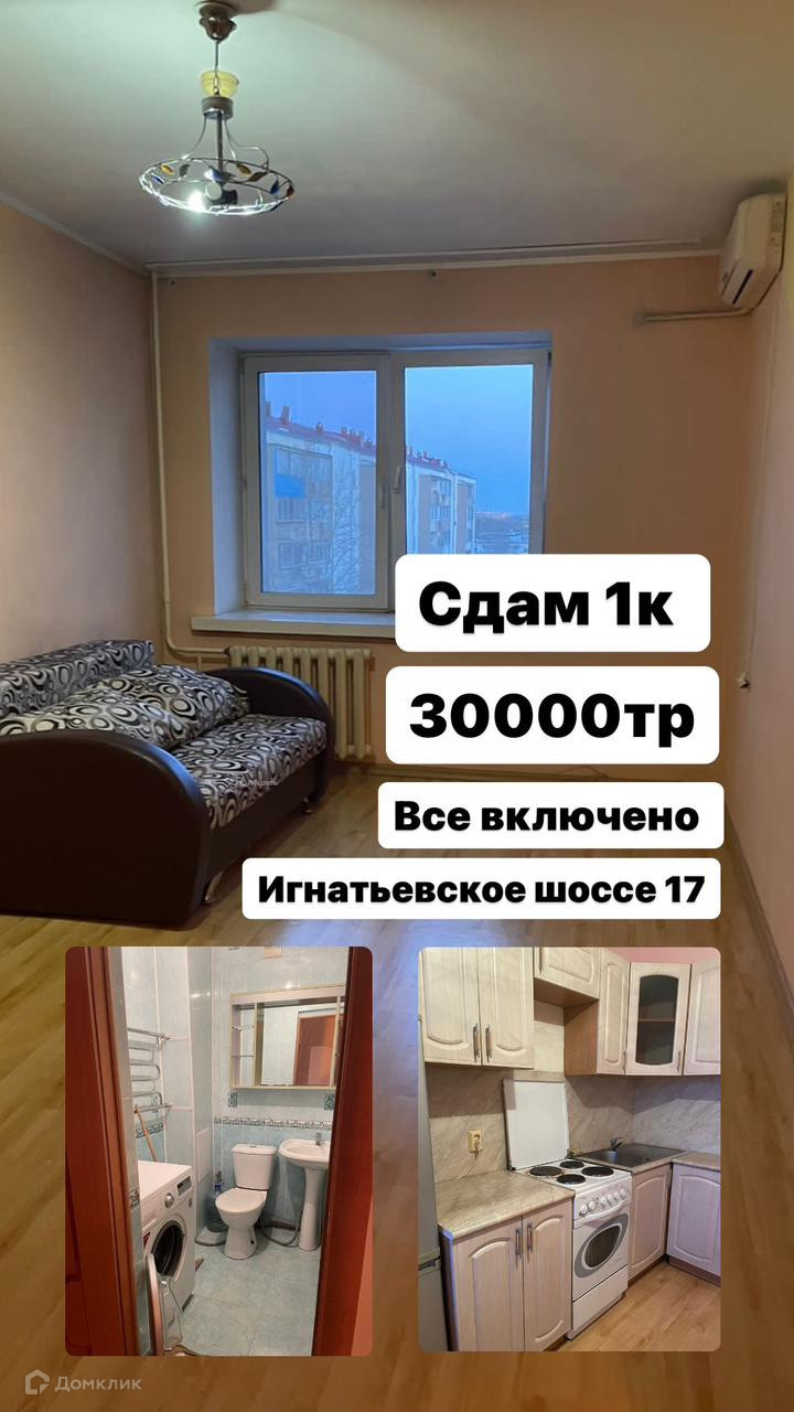 1-комнатная квартира, 38 м2, в аренду на длительный срок в Благовещенске, Игнатьевское шоссе, 17