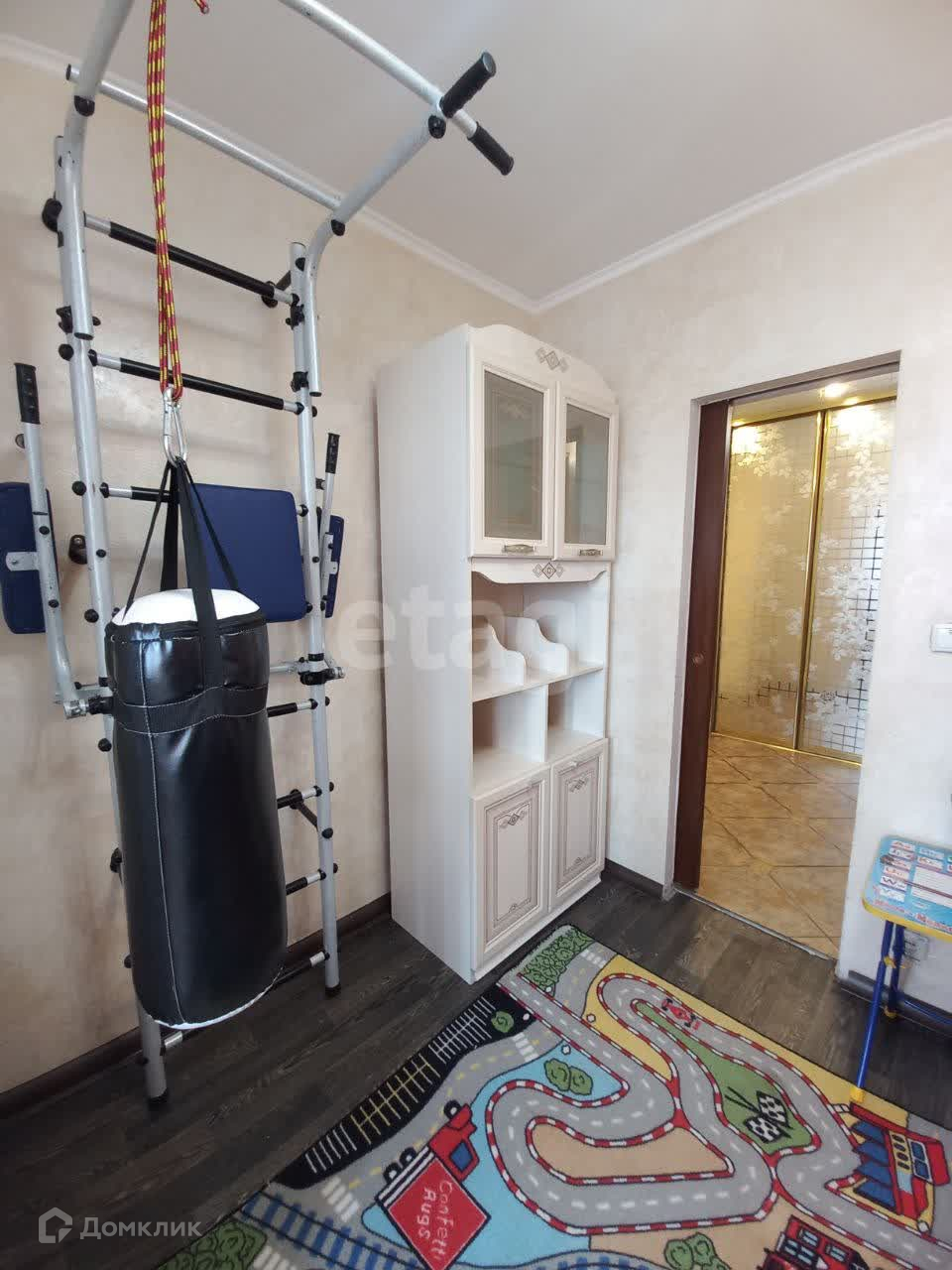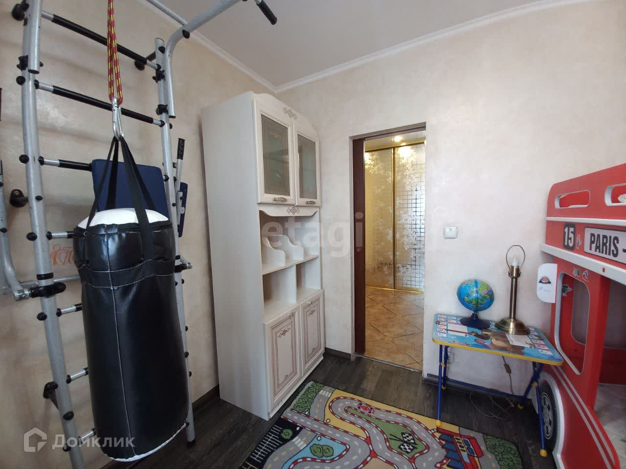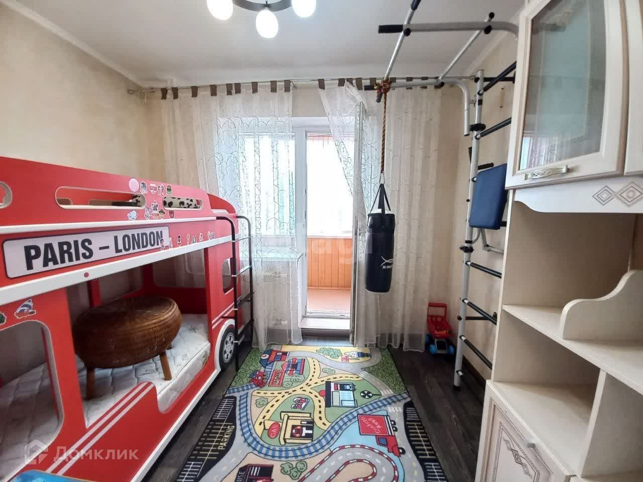 В квартире есть все для комфортного проживания (кухонный гарнитур,холодильник,стиральная машинка,электро плита, диван, двуспальная кровать, телевизор, одна комната отведена под кабинет, два балкона, двухъярусная детская кровать, детский спортивный уголок)