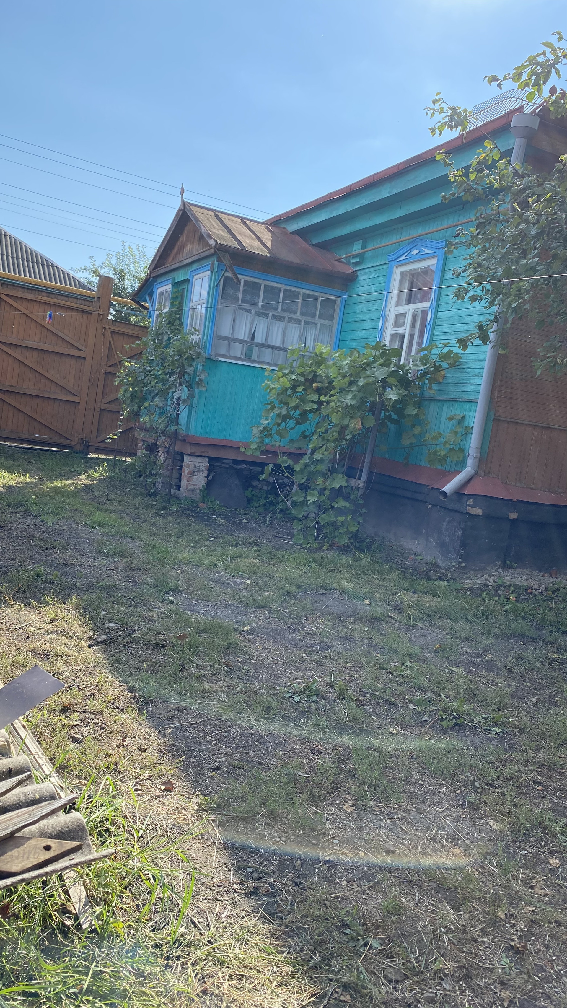 Просторный двор, широкие ворота, участок под огород или сад чуть более 10 соток. Имеются плодовые деревья, виноград, ежевика и тд. К дому ведёт асфальтированная дорога в шаговой доступности центр, магазин, школа-"Лидер", детский сад, всё в 5-15 минут ходьбы.