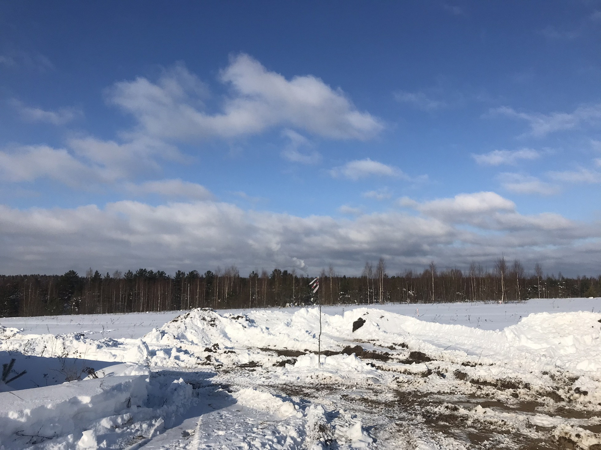 Участок находится по дороге к озерам, целый день светит солнце, и быстрее сходит снег чем где либо