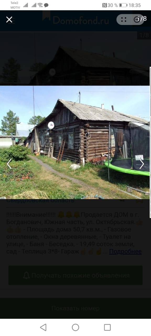 1-этажный дом, 51 м2, на продажу в Богдановиче, Октябрьская улица, 68