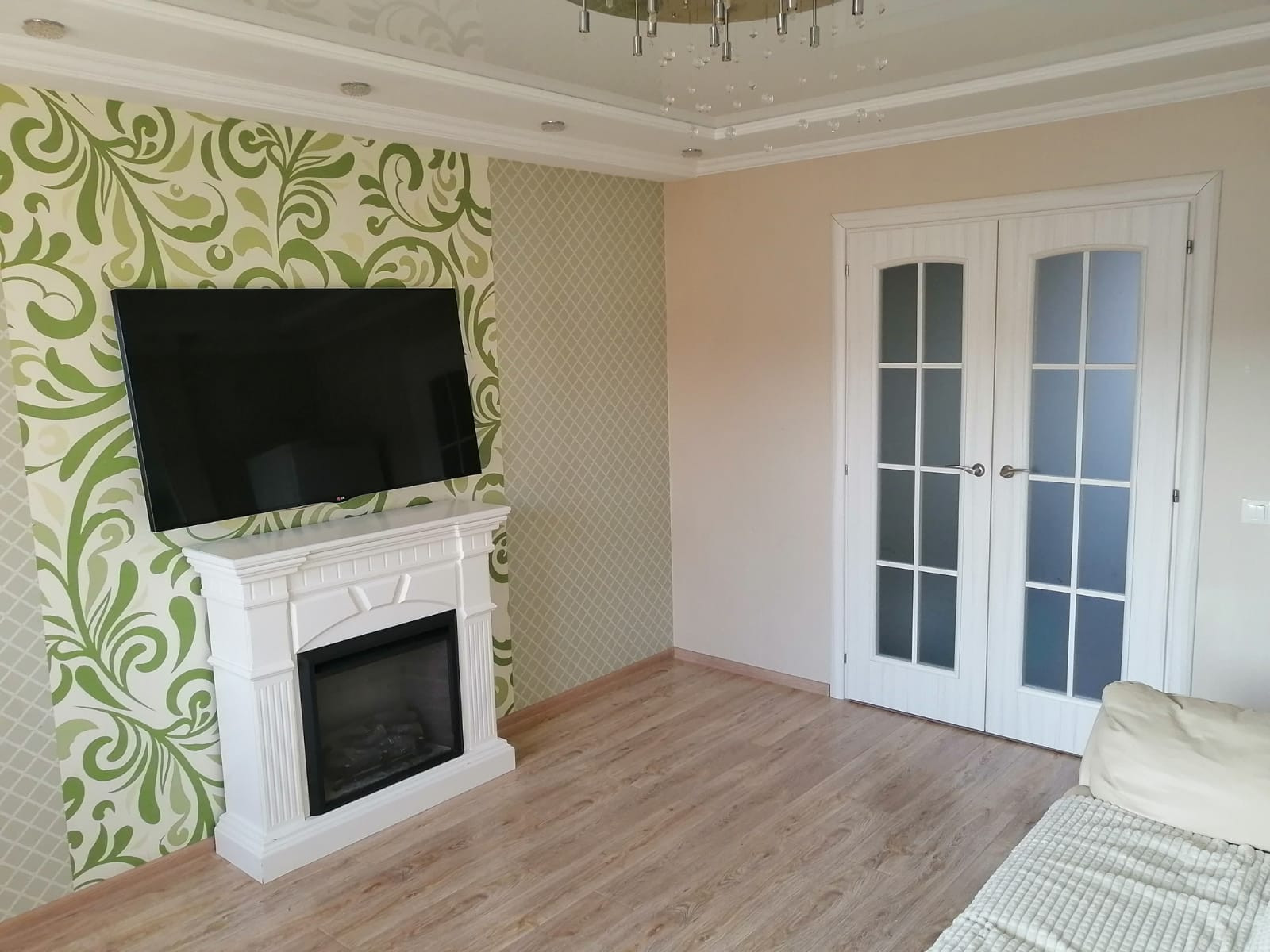 В квартире сделан капитальный ремонт, стены ровные, пол бетонный, новая проводка.