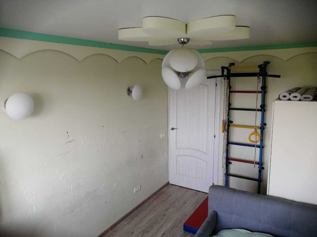 На полу постелен ламинат, в ванной туалете, кухне, коридоре (частично) керамогранит, везде где плитка тёплый пол. В каждой комнате несколько уровней освещения, в спальне проходной выключатель.