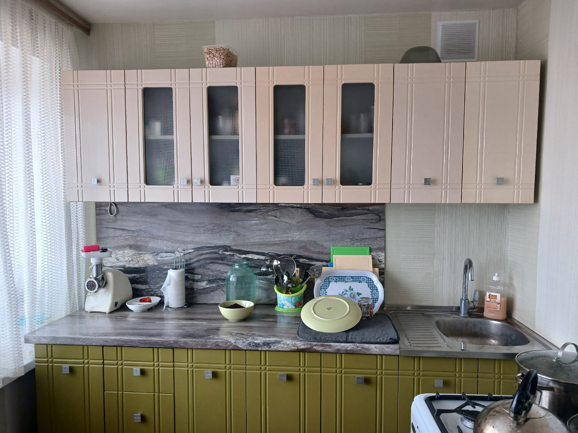 В квартире свежий косметический ремонт. Кухонный гарнитур остается.