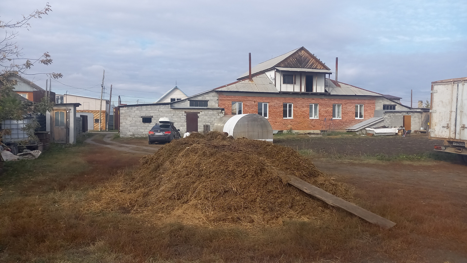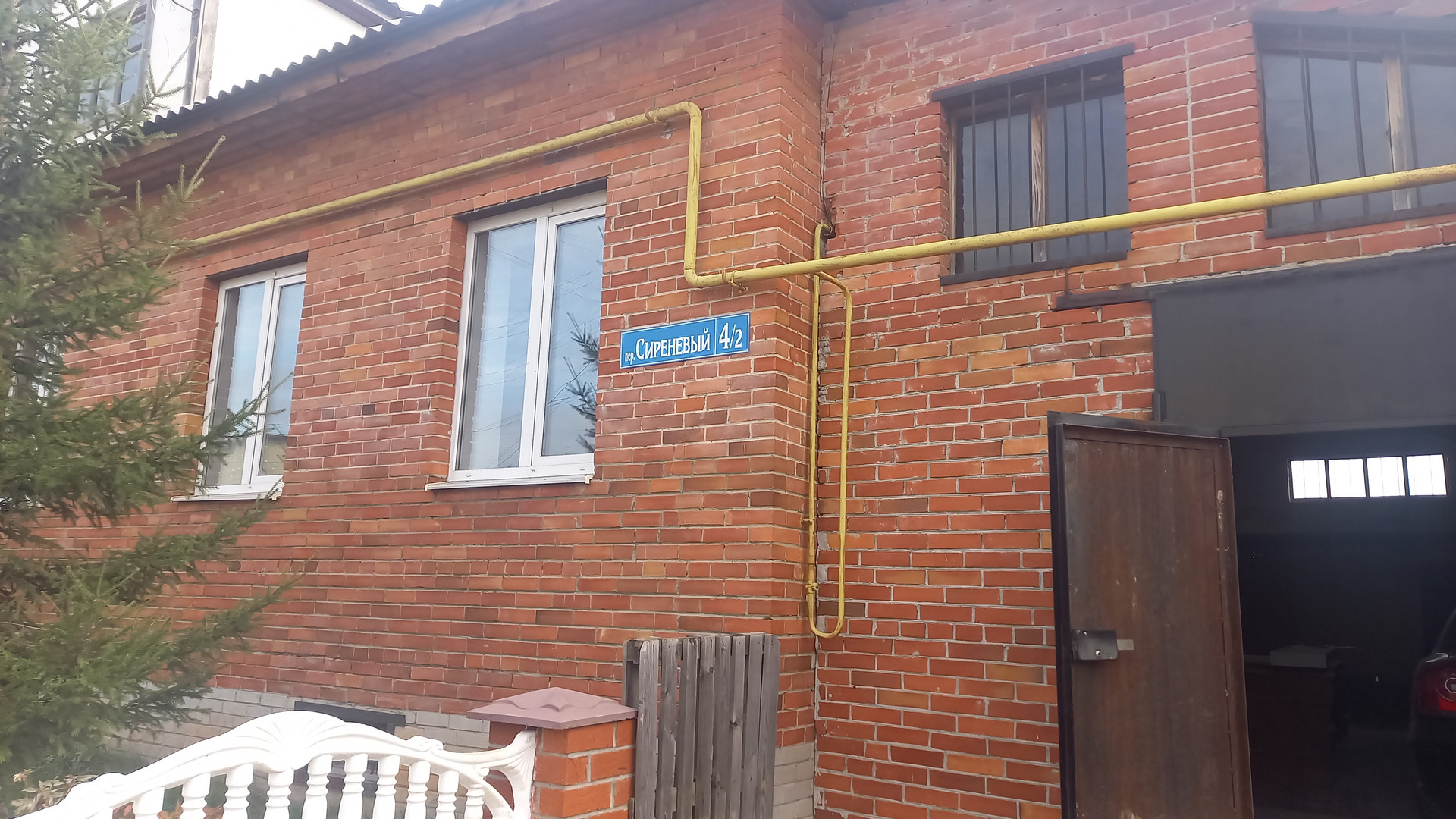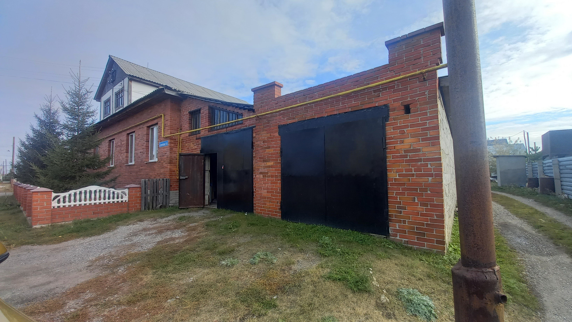 Большая крытая ограда. Есть гараж.