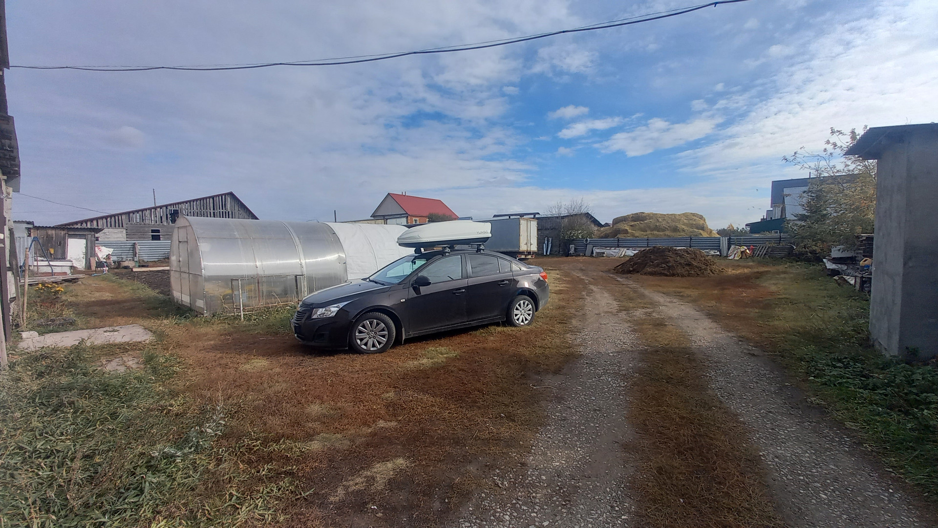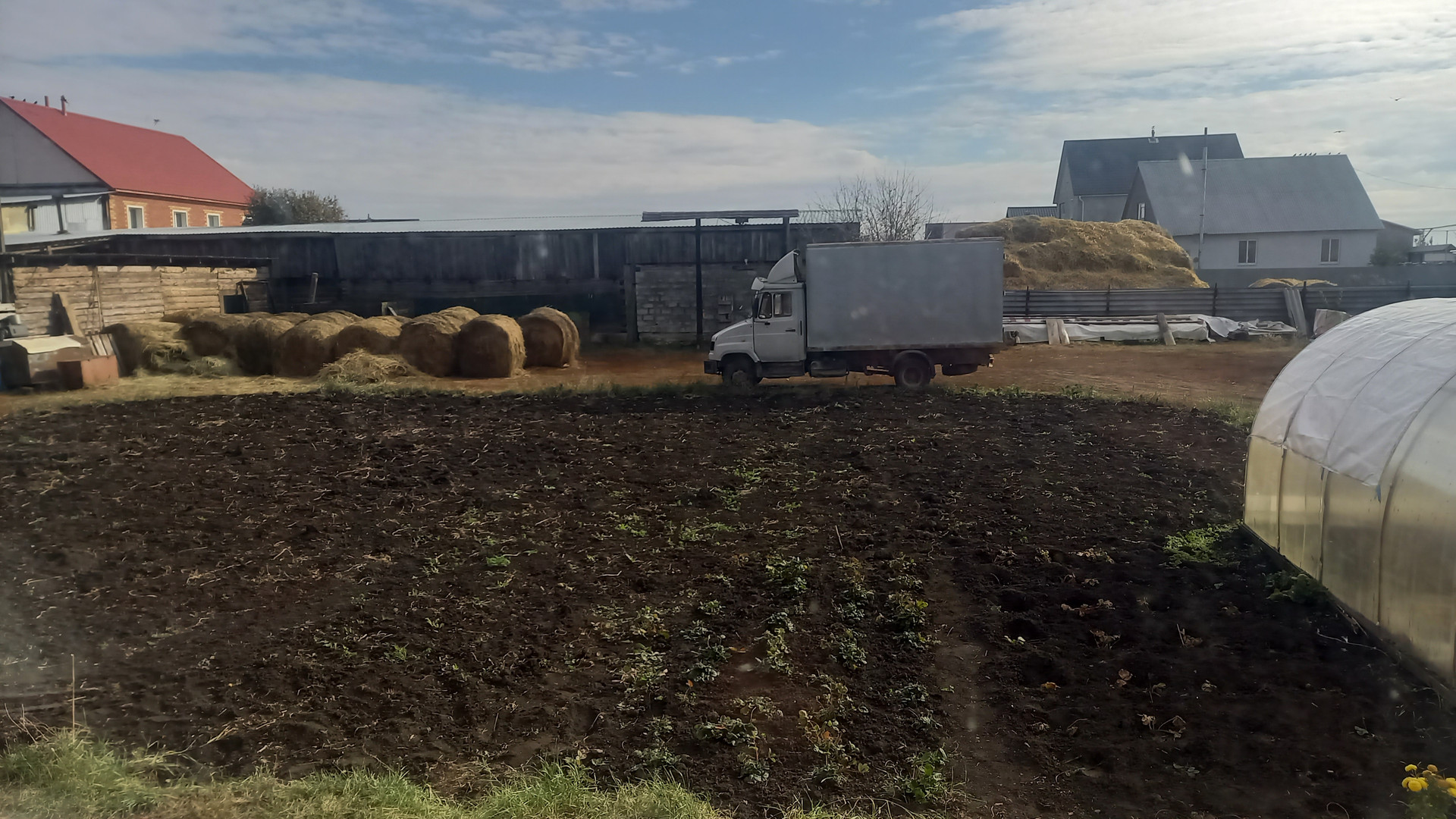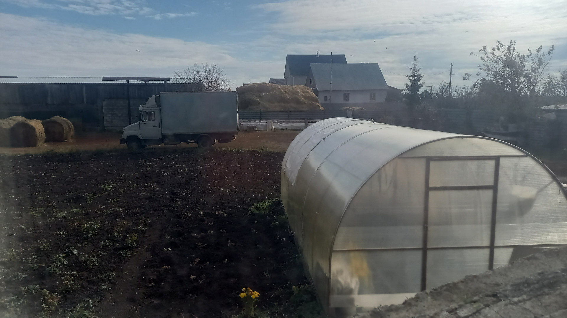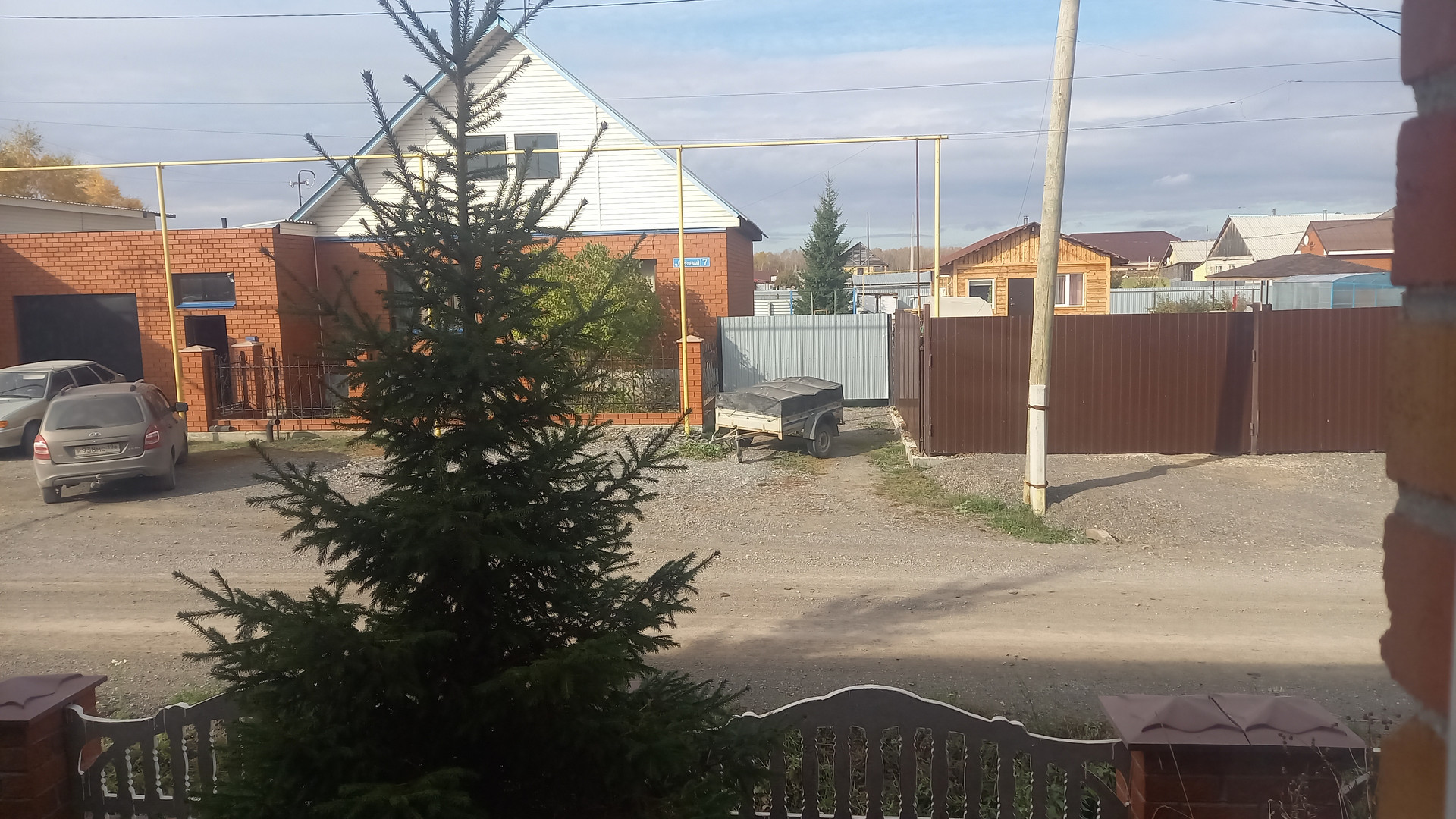 Большая крытая ограда. Есть гараж.