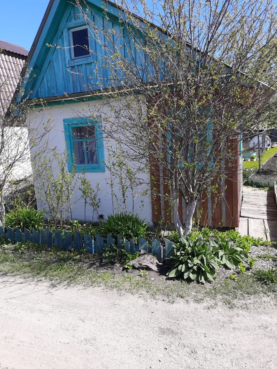 Продается земельный участок. На участке: садовый дом из огнеупорного кирпича 3*2,5 и деревянный пристрой, крыша перекрыта шефером. Имеется сарайка для хоз. инвентаря, электричество, колодец, 2 теплицы, парник, насаждения.