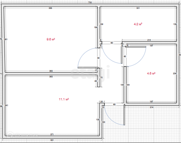 Общая площадь 44 м2