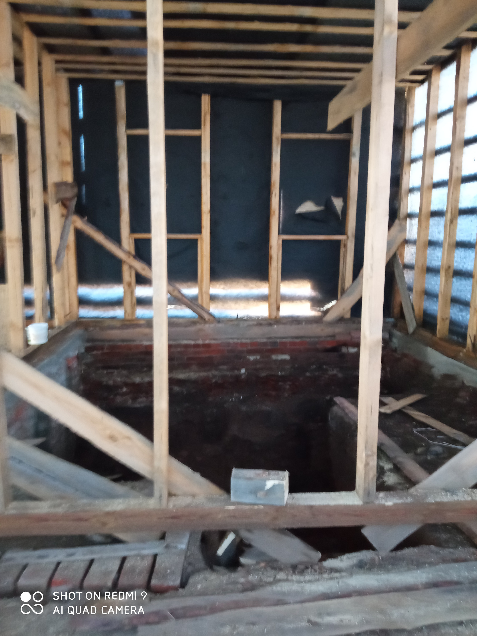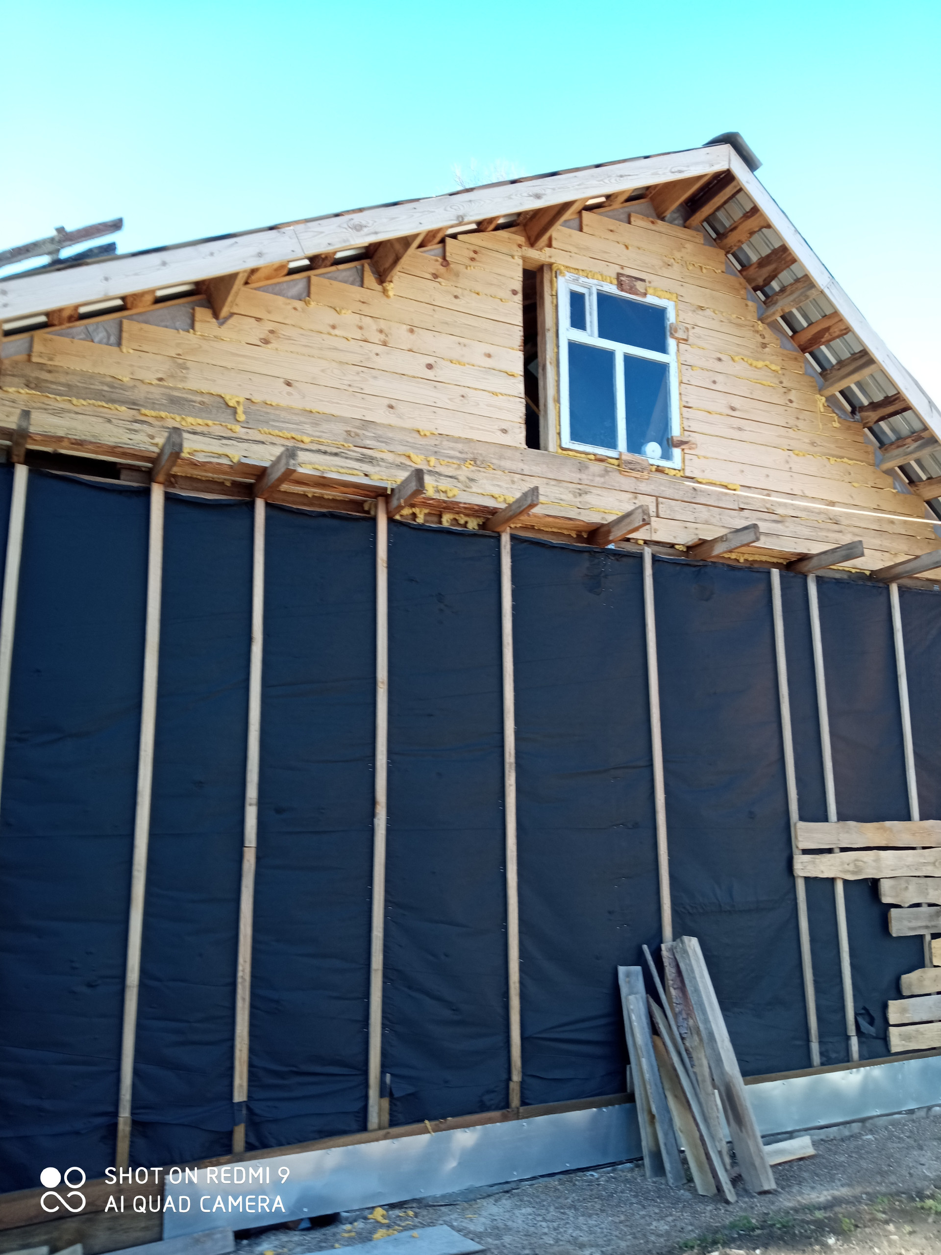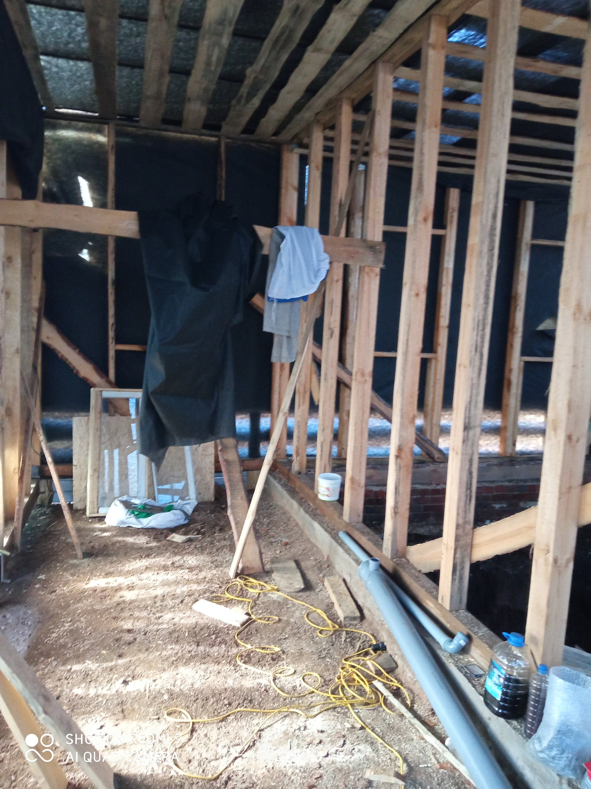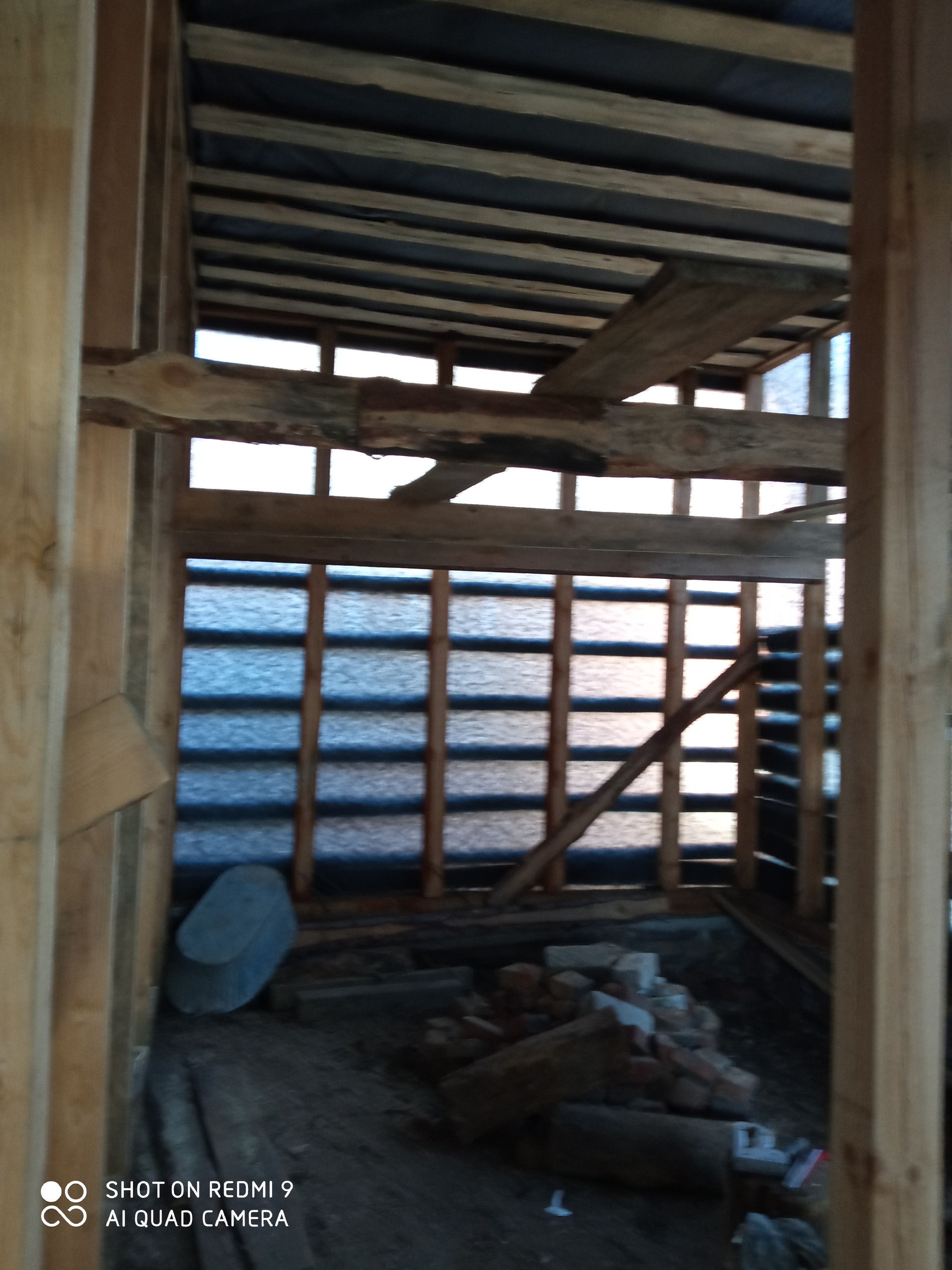 Продам недострой. Каркас под крышей из профлиста, двор крытый, участок ровный.