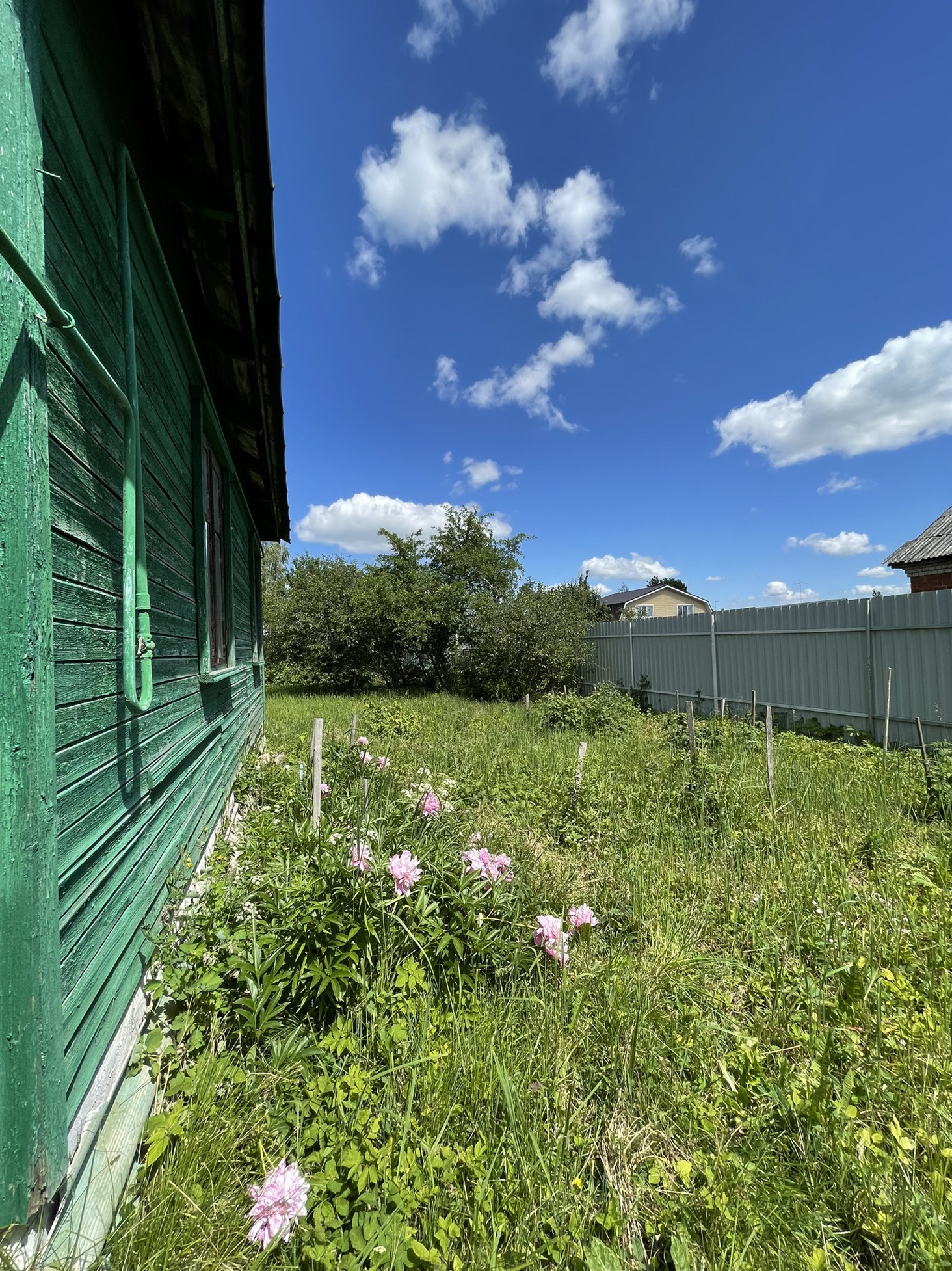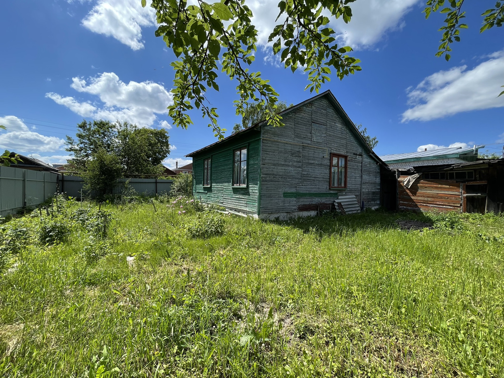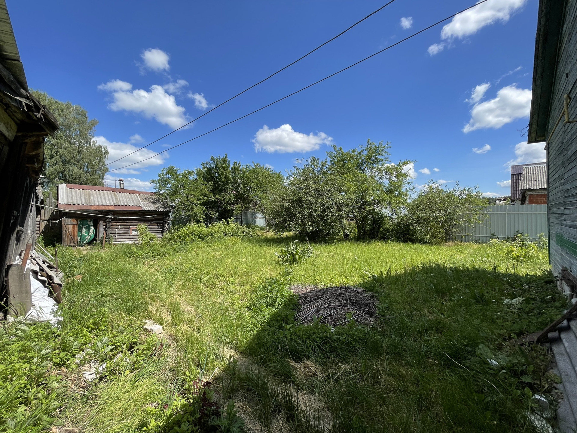 Широкий фасад - есть место для строительства. Участок ровный и сухой, с плодовыми деревьями. В огороде пристрой и небольшая банька.