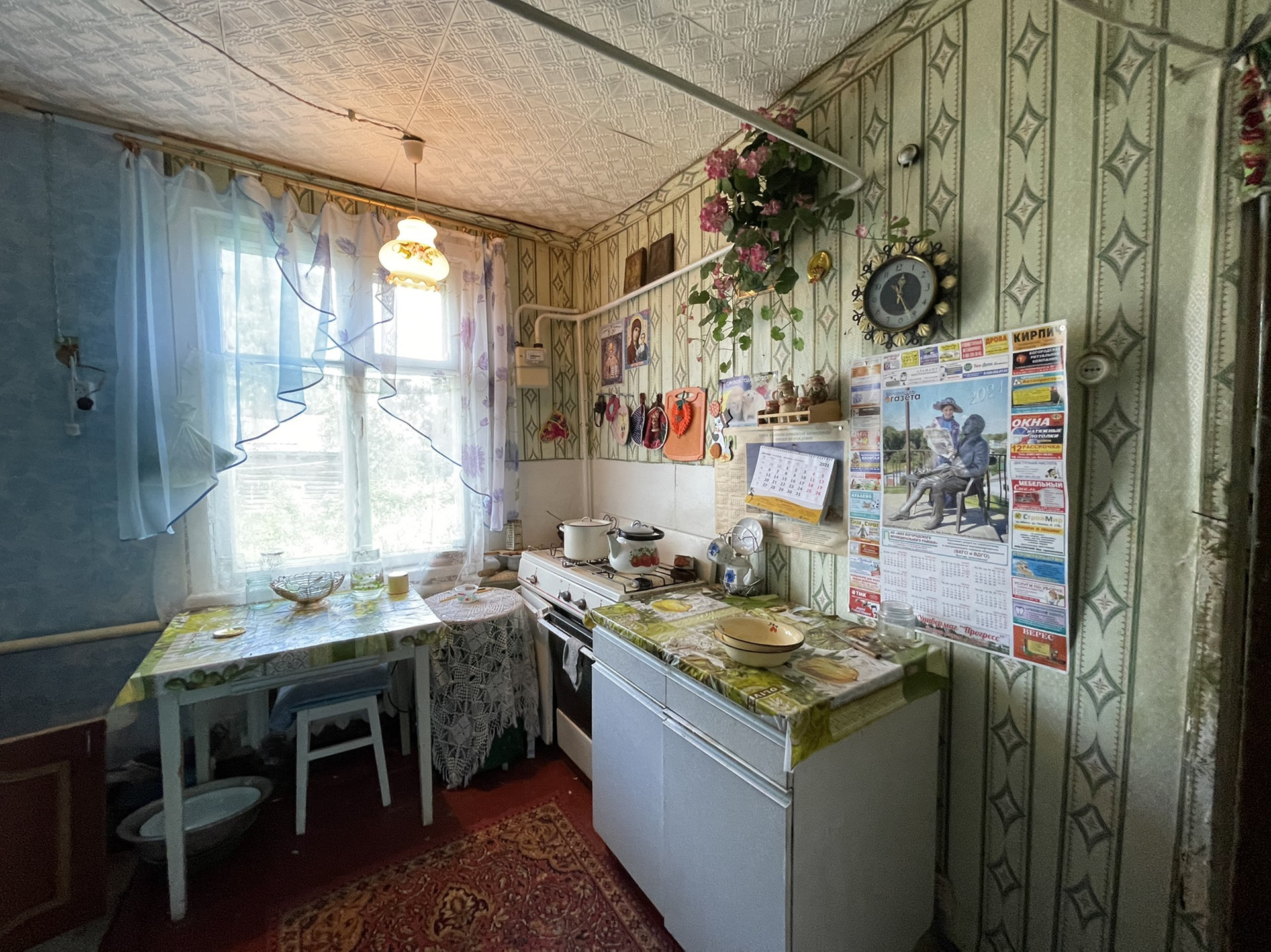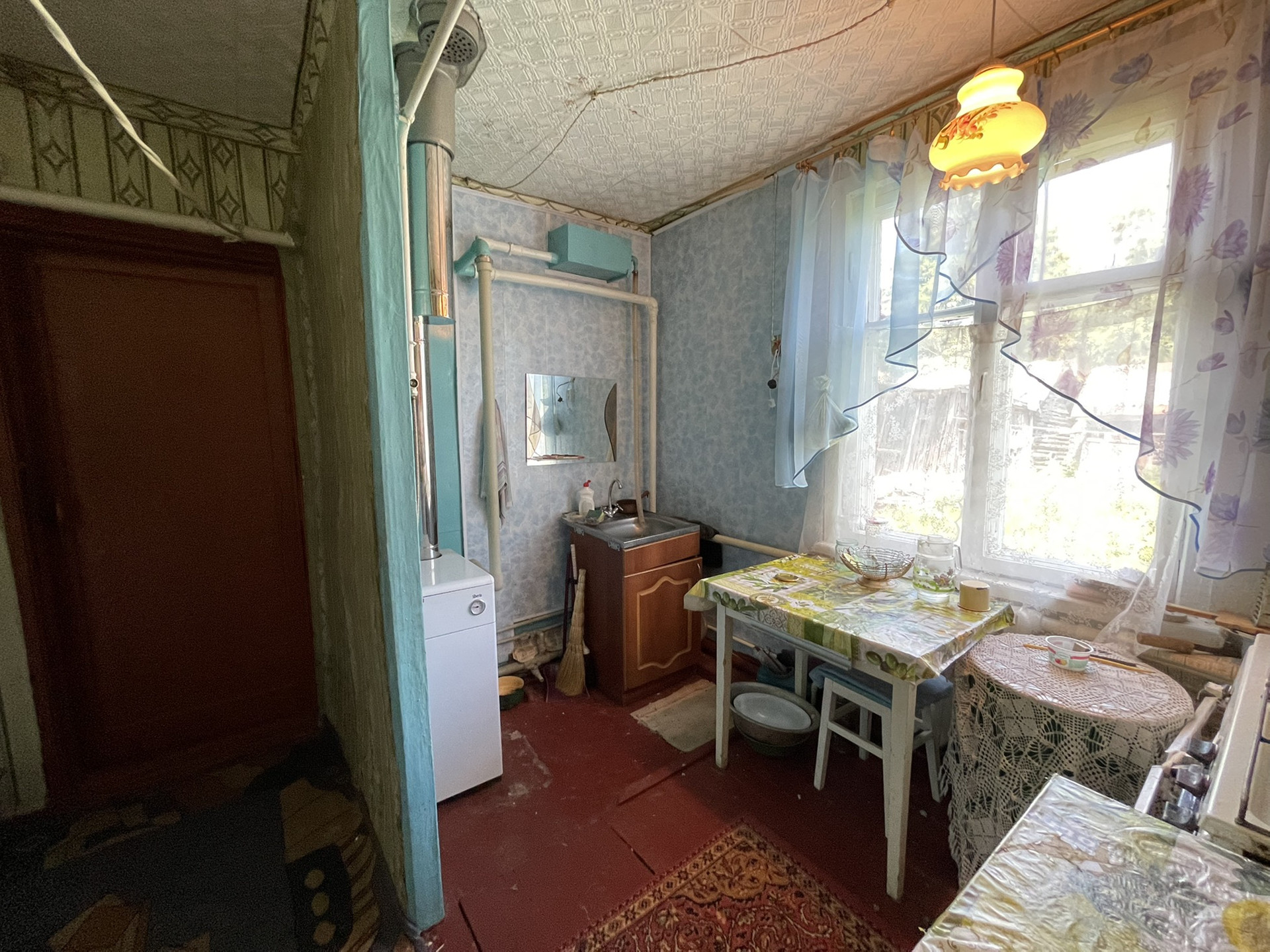 В доме три комнаты, кухня, коридор, чулан. Отопление - газовый котёл, электричество и водоснабжение в доме.