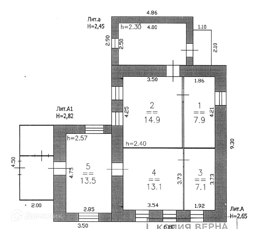 Высота потолков (м.): 2.40