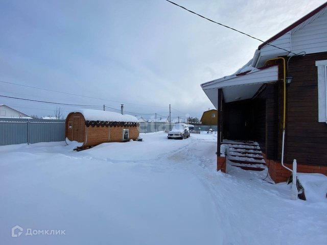 На земельном участке площадью 10 соток, огороженном профнастилом, есть баня-бочка, высажены плодоносящие деревья, обустроена детская игровая площадка.